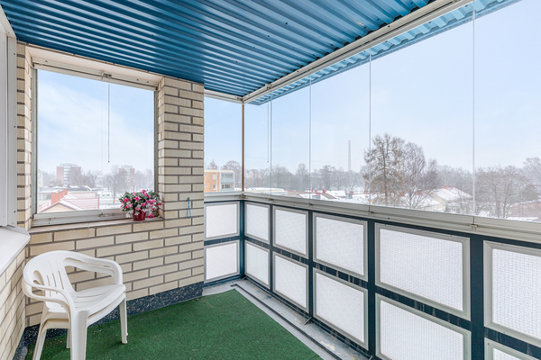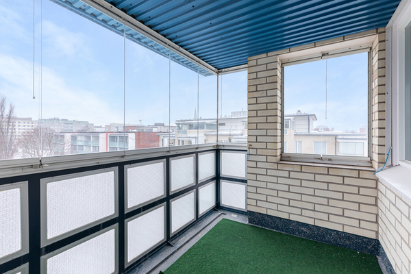 Toinen parveke on olohuoneen yhteydessä ja se on länteen. Toinen parveke on yhdestä makuuhuoneesta ja se on itään päin.