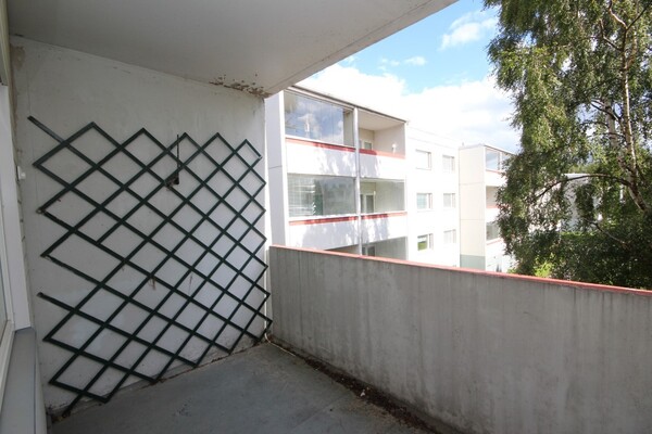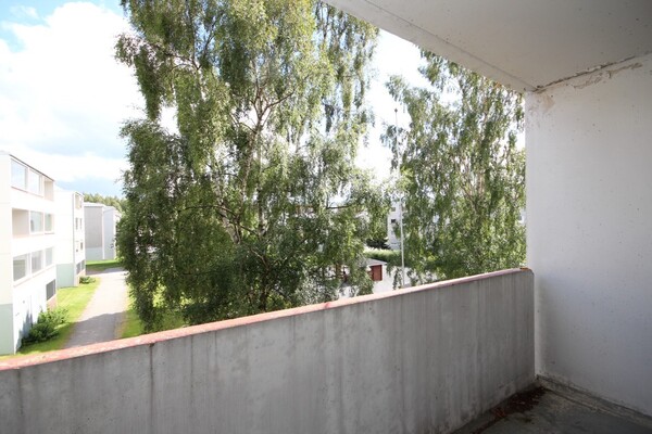 | Näköala | Parvekkeelta näkymät kerrostalojen keskelle jäävälle pihalle |