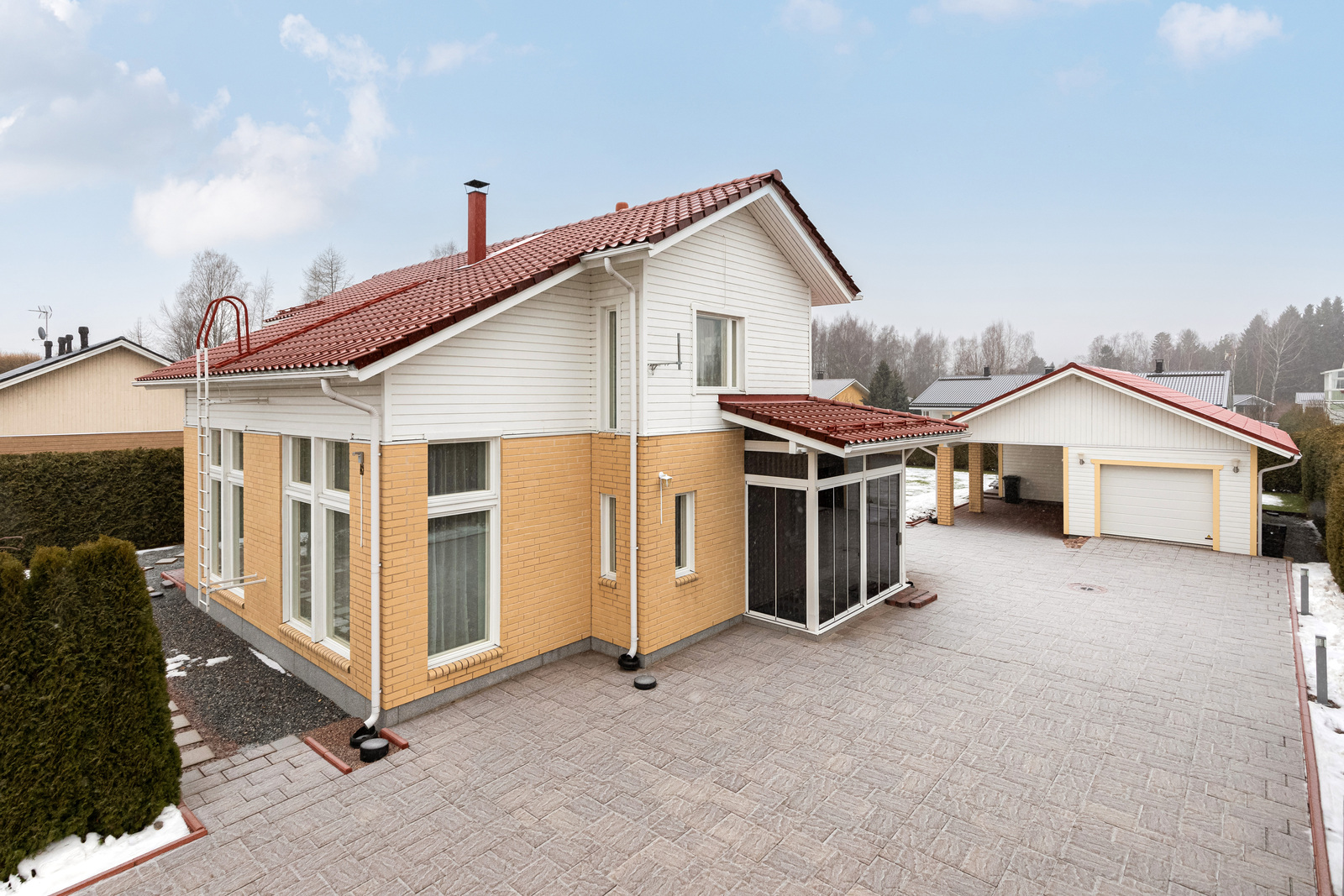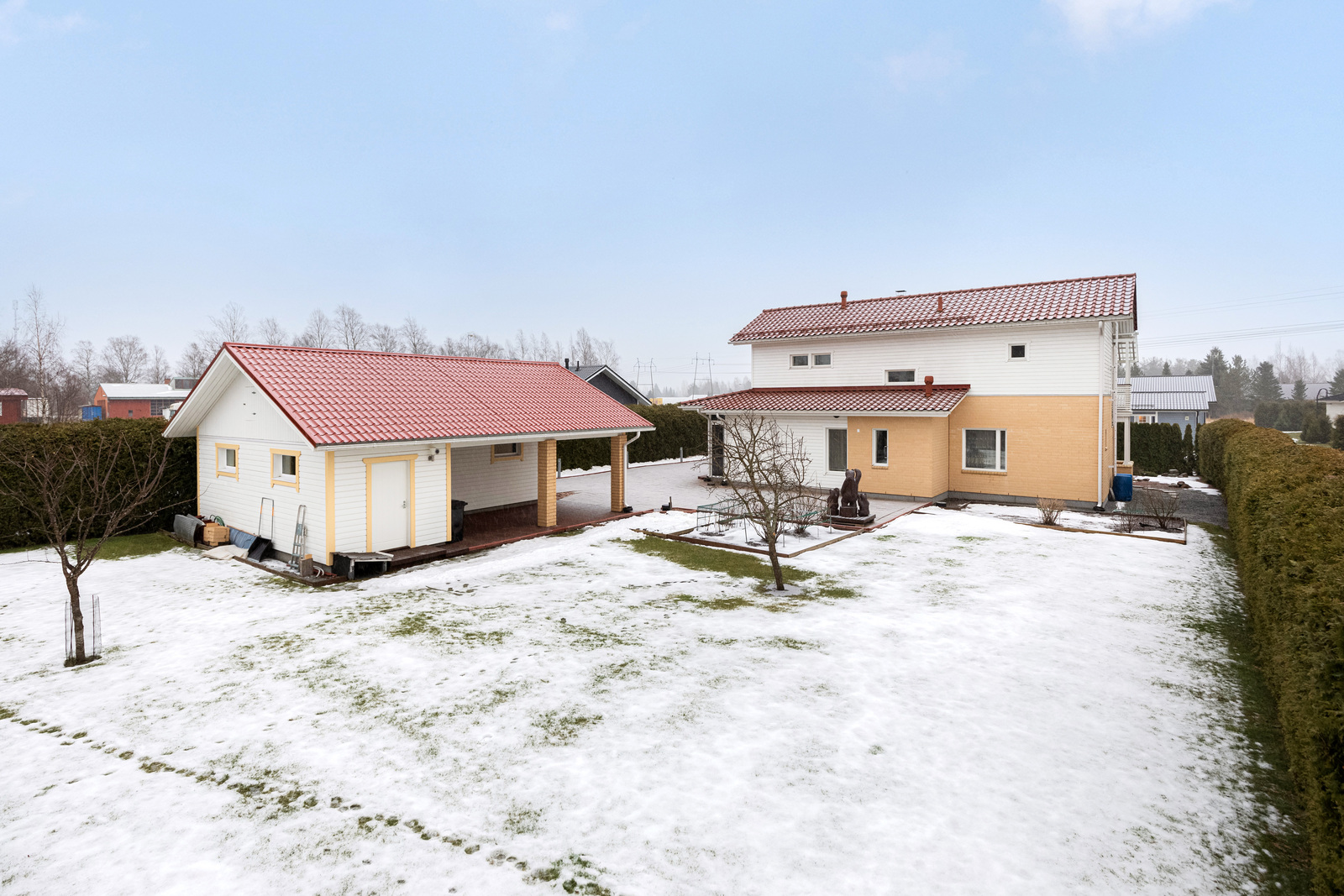 | Lisätietoja pinta-alasta | Huoneistoala 149m2 ja kerrosala 181m2. Erillinen autotalli/varasto/autokatosrakennus 48m2 |
