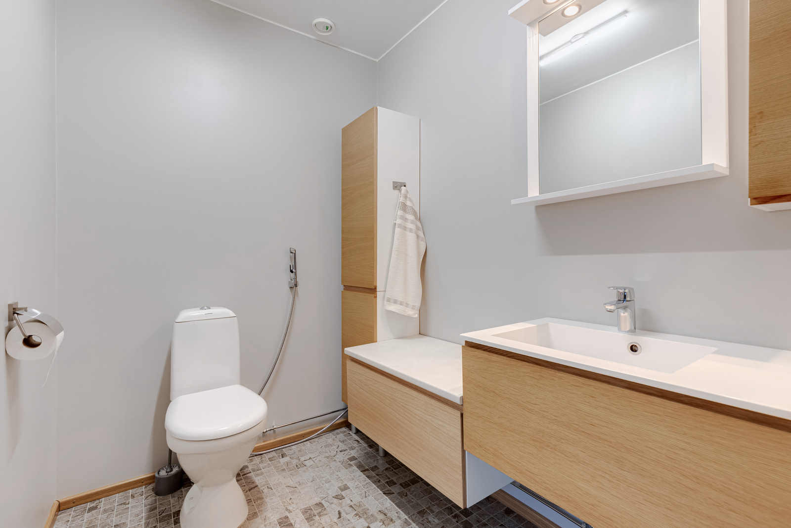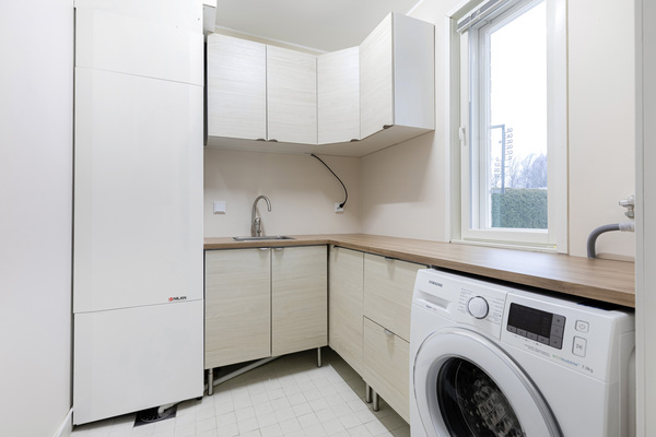 Kodissa on kolme makuuhuonetta sekä toimivat ja laadukkaat kodinhoito-, pesu- ja saunatilat.