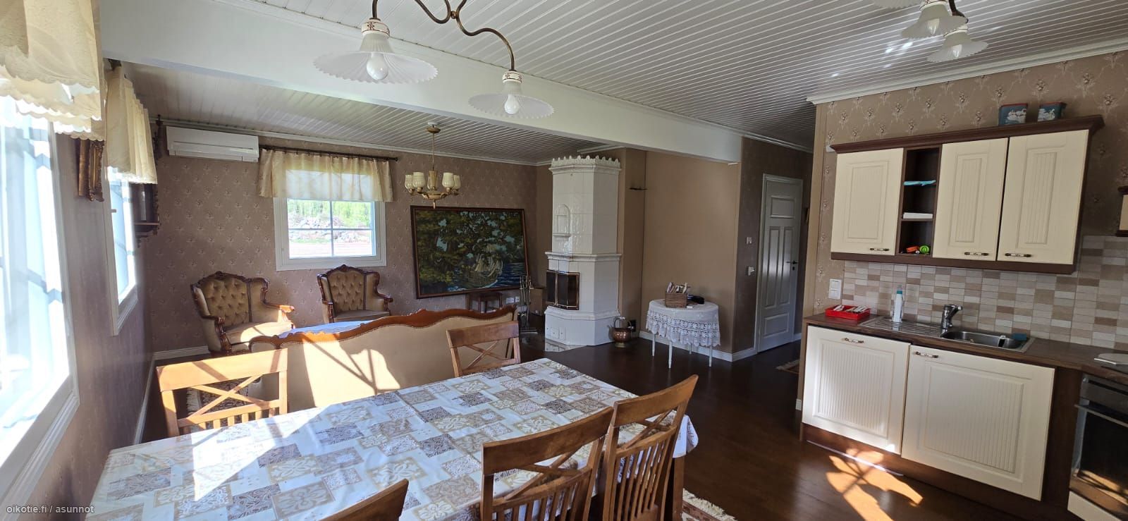 1 mh, tupakeittiö, pesuhuone, sauna, wc, khh, yläkerrassa 2 huonetta, wc, vh, suuli, liiteriAsuinpinta-ala