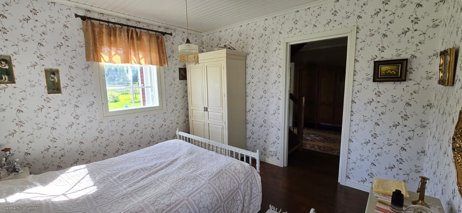 Talossa on alhaalla yksi makuuhuone, yläkerrassa on kaksi.