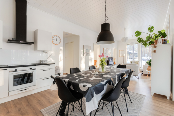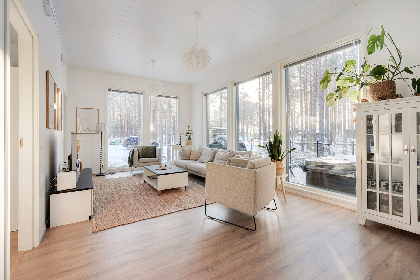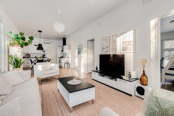 Selkeä ja toimiva pohjaratkaisu käsittää kolme makuuhuonetta sekä avarat oleskelutilat, jotka luovat puitteet viihtyisälle arjelle ja rentoutumiselle. Tyylikäs ja ajaton kokonaisuus on suunniteltu nykypäivän tarpeisiin.