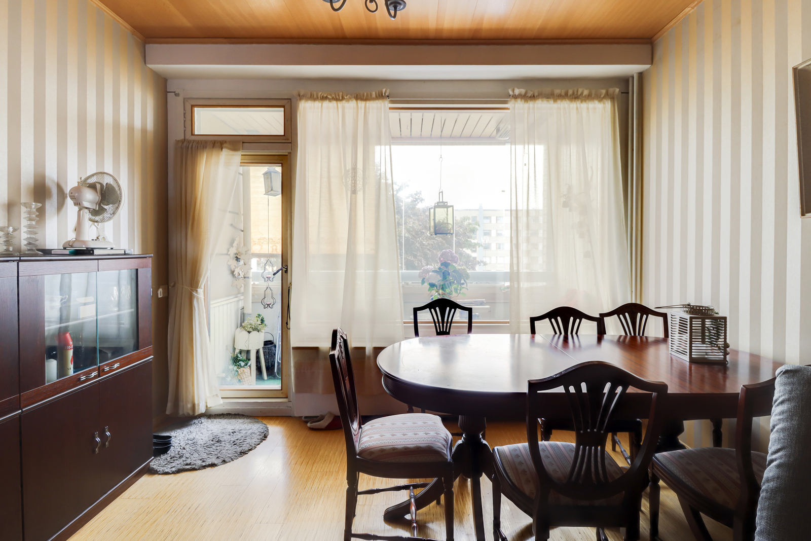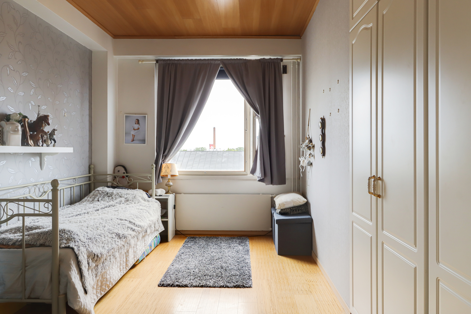 ruokapöydälle. Kaksi reilun kokoista ja valoisaa makuuhuonetta, joihin ei ole näköyhteyttä naapuritaloista. Erillinen