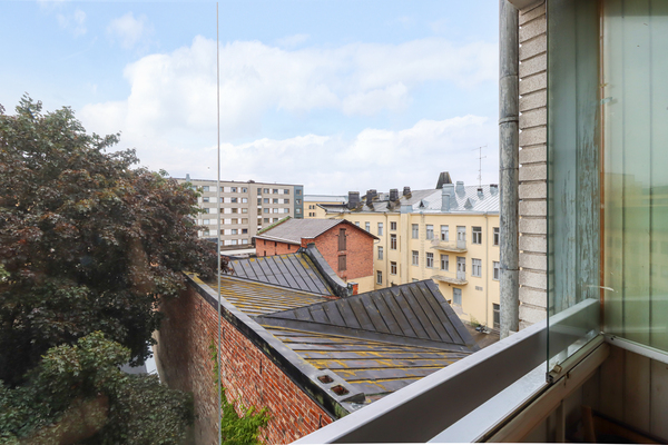Asunnon ikkunoista (5/6 kerros) avautuvat kaupunkimaisemat kattojen yli ja kauniille Keski-Porin kirkolle. Tilavasta