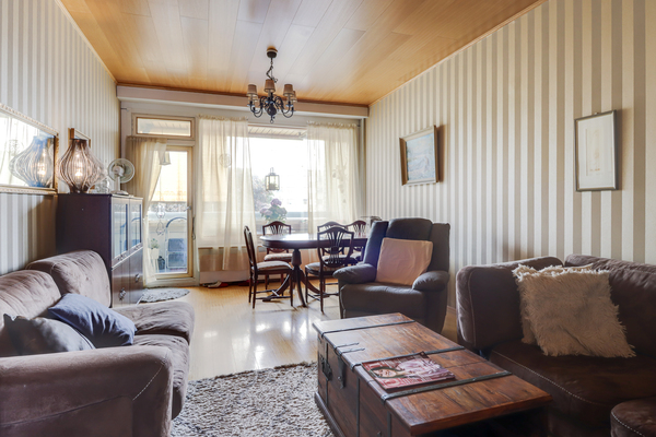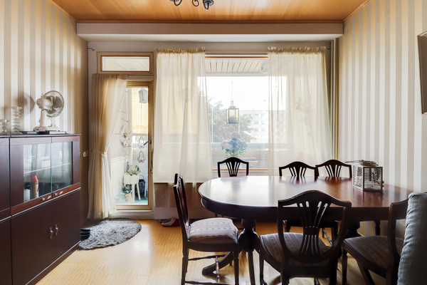 Asunto on neliöitään suurempi ja sen tilavassa olohuoneessa on tilaa sohvaryhmän lisäksi isommallekin