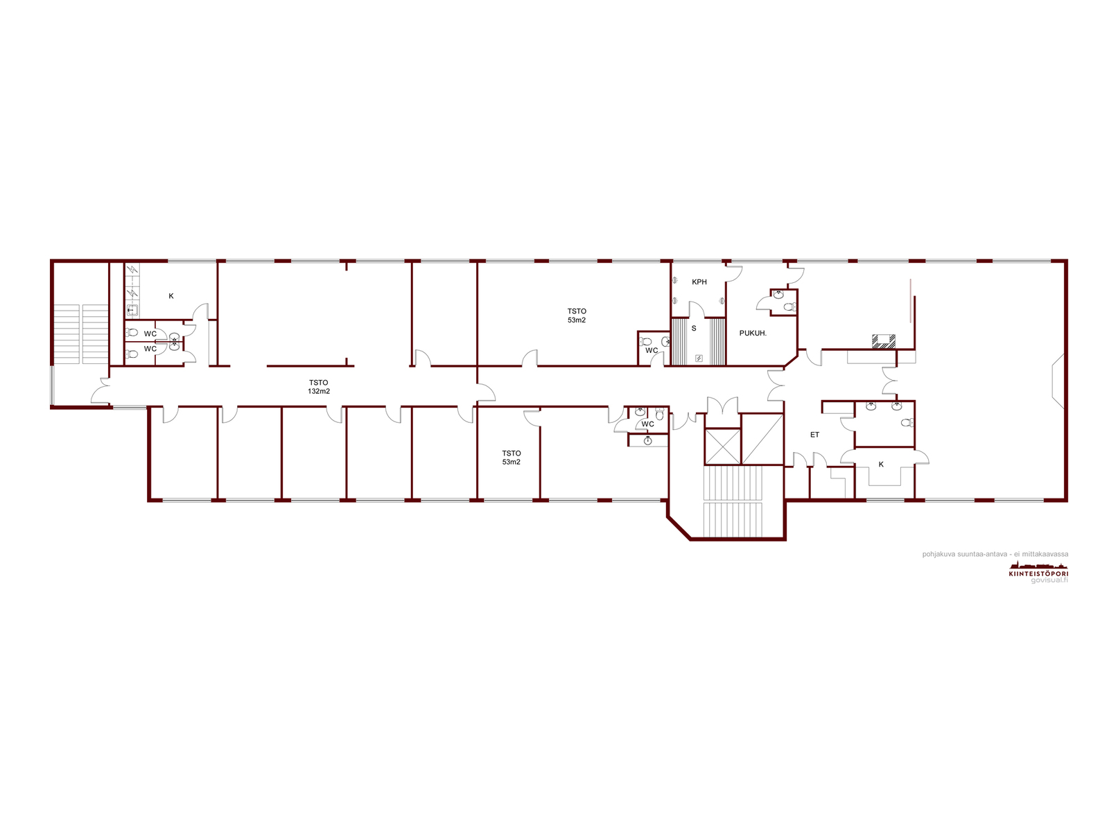 | Huoneiston kuvaus | 2h, k, rt, oh, th, pkh, ph, s, 2wc +3kpl toimistohuoneistoja |
