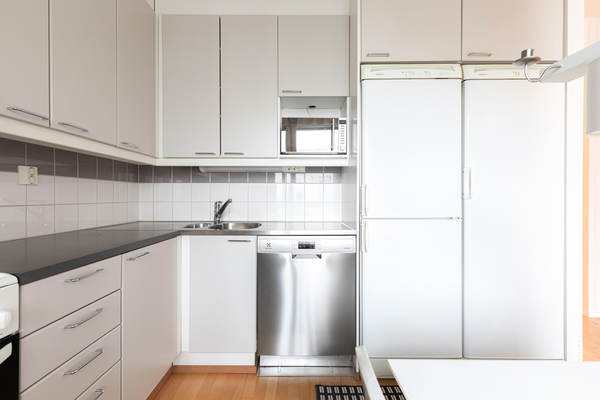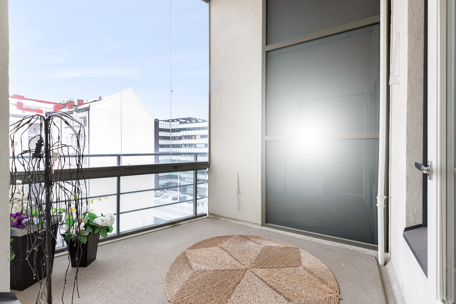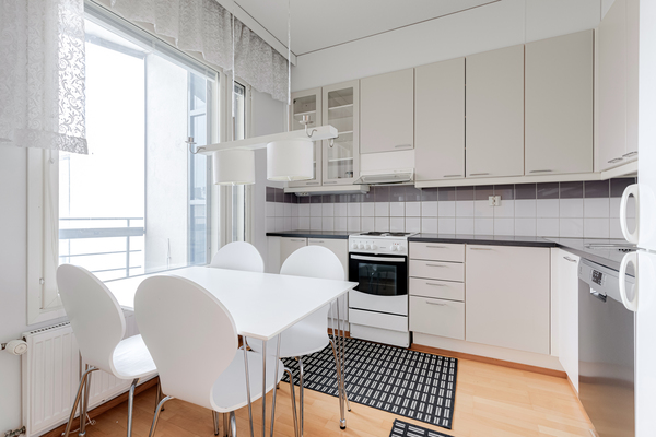 Läpitalon huoneisto on poikkeuksellisen valoisa, ja ylimmän kerroksen sijainti tuo asumiseen rauhaa sekä avarat näkymät. Lasitettu parveke lisää asumismukavuutta ja toimii mukavana lisätilana pitkälle syksyyn.