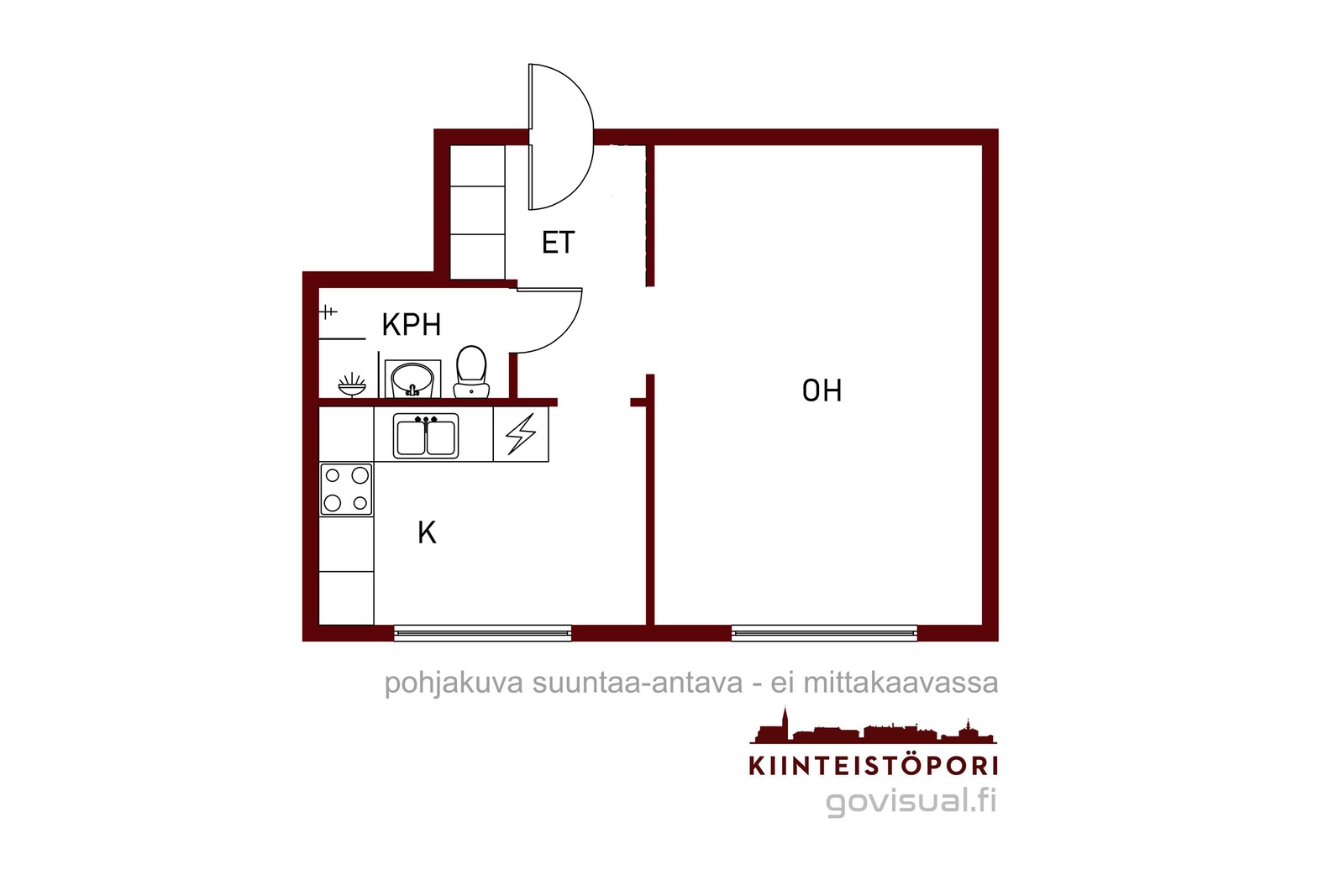 | Huoneiston kuvaus | 1 h, kk, kph |