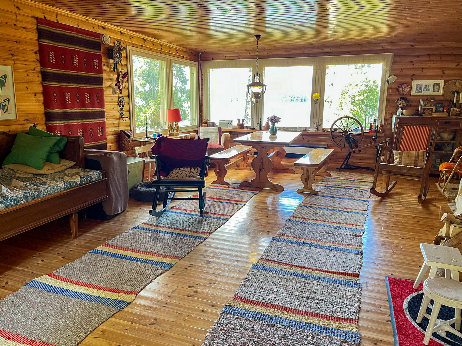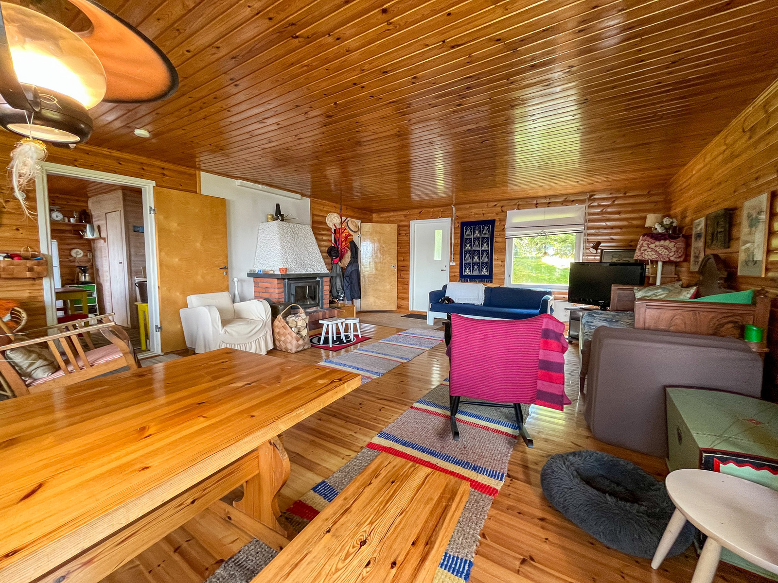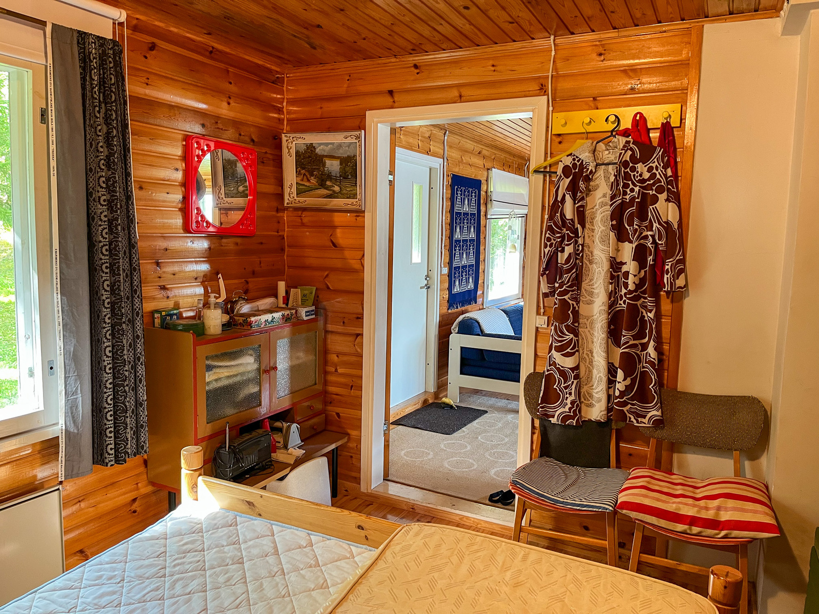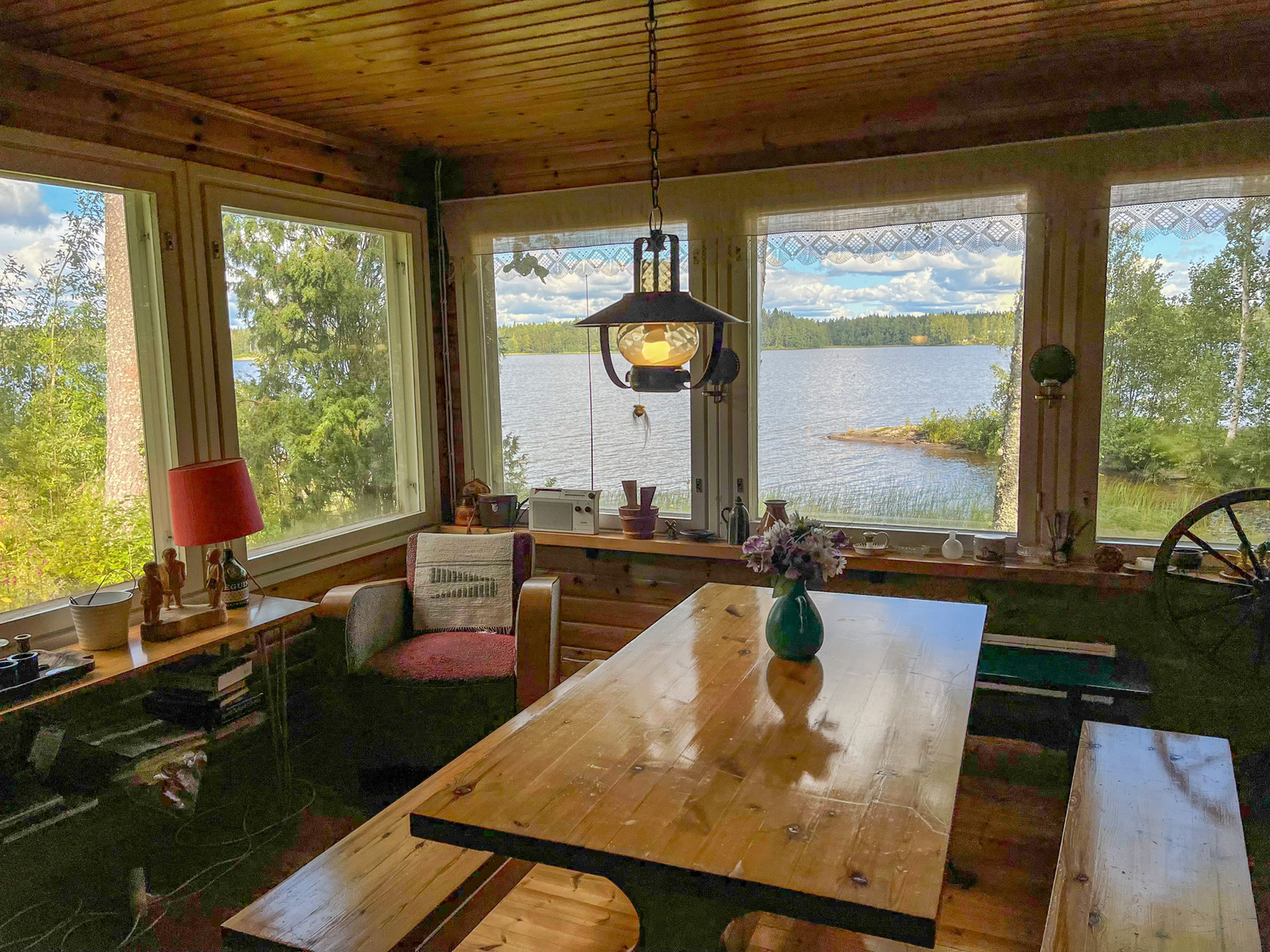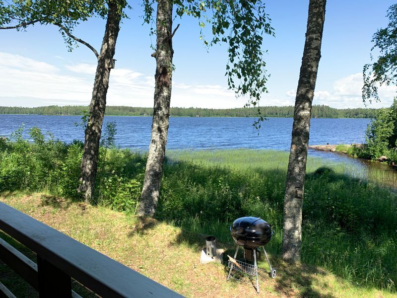 On pari makuuhuonetta, keittiö ja iso olohuone, josta on aivan huippunäkymät järvelle!