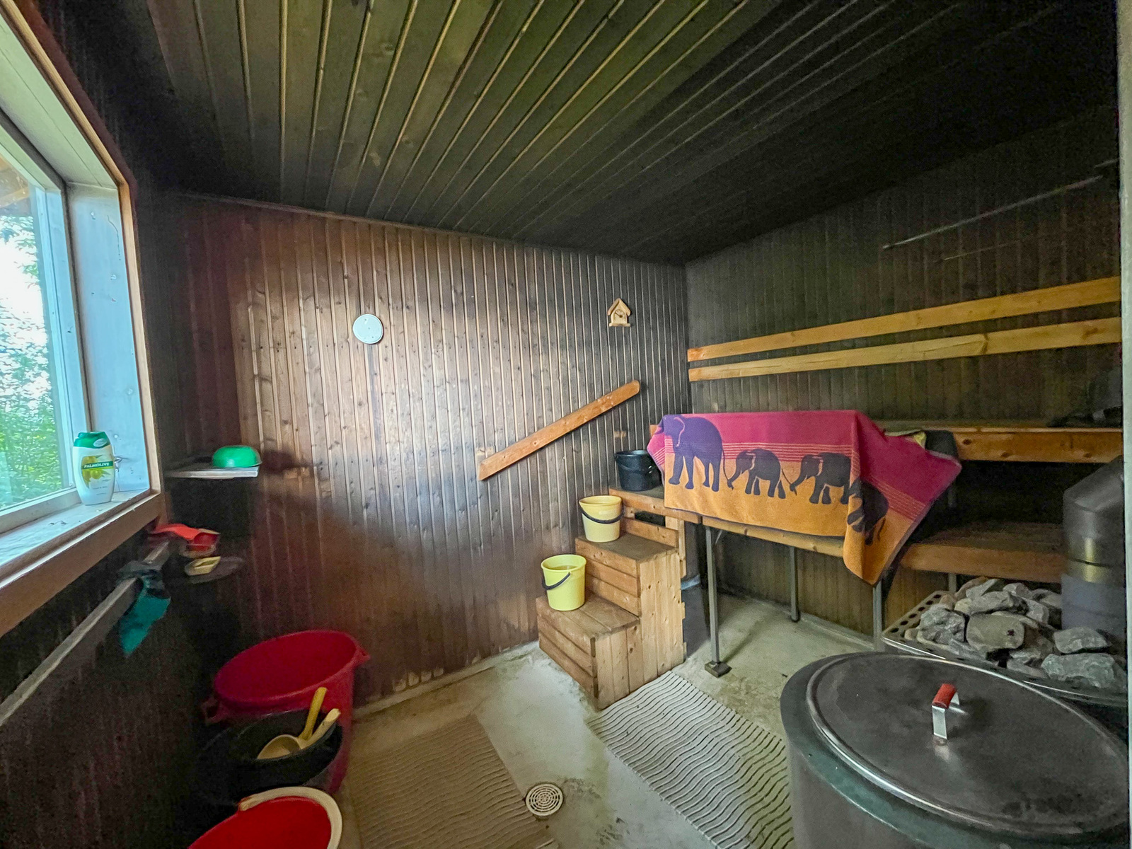 Ja tietenkin on puulämmitteinen sauna.