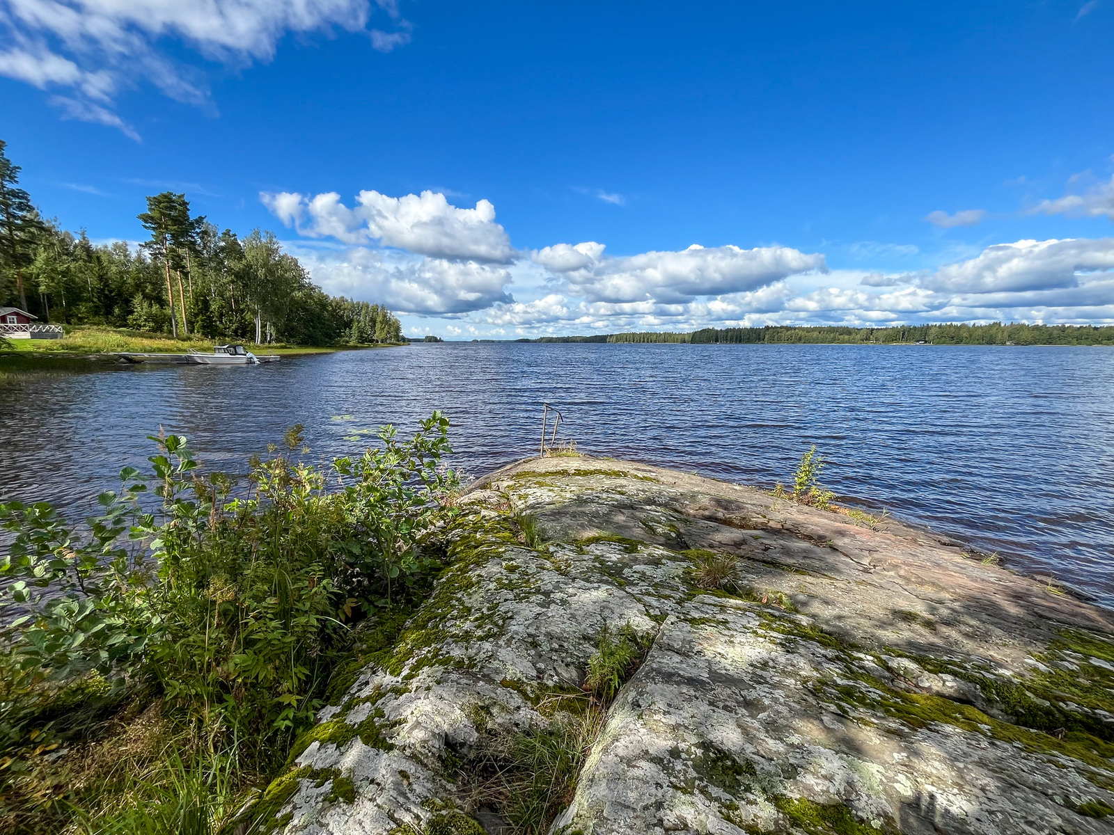 Laituri on aivan uniikki luonnonkivilaituri, joka ulottuu pitkälle järveen ja josta on huikeat näkymät auringonlaskun aikaan!