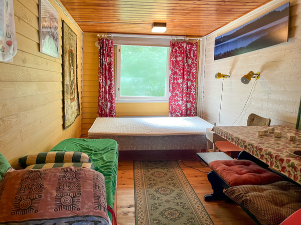 | Käyttövesi | Noin 300 metrin päässä sijaitsee kaivo, josta voi käydä hakemassa vettä. Järvivettä on käytetty peseytymiseen, juomavesi tuotu tullessa |