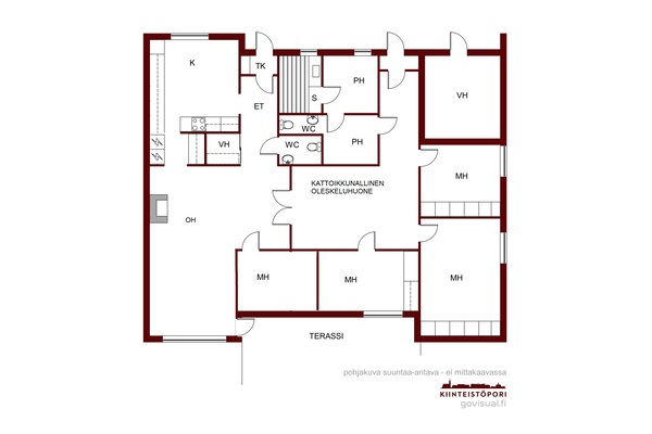 | Muiden tilojen kuvaus | Asunnon keskellä kattoikkunallinen oleskelutila |