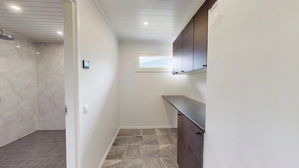 Ulkoa, takapihalta on käynti vielä yhteen lämpimään varastoon, jos esim. harrastukset vaativat tilaa.
