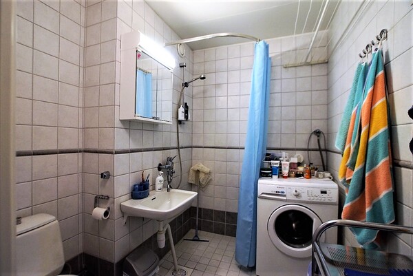 | Kylpyhuoneen kuvaus | Laatoitettu ja vesieristetty n. vuonna 2004. Lattialämmitys. Peilikaappi. |