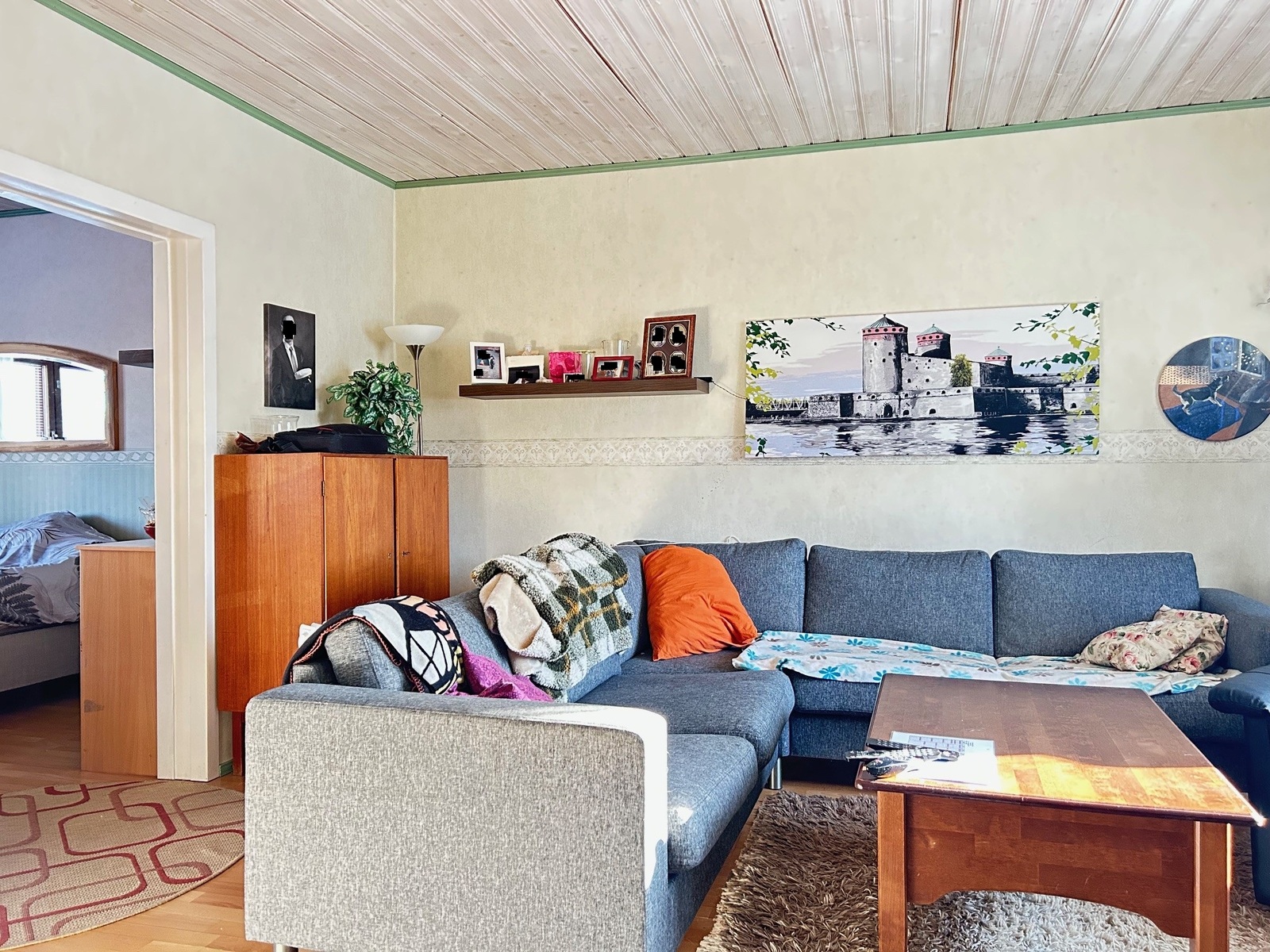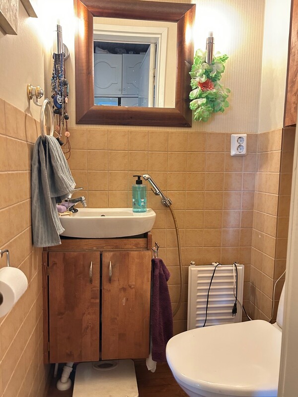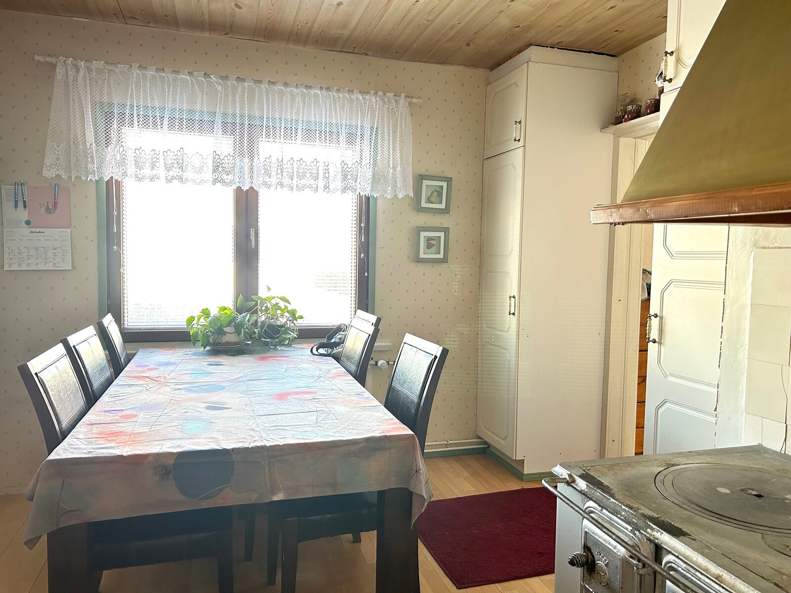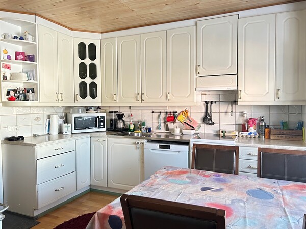 | Keittiön kuvaus | Puuliesi vaatii toimenpiteitä ennen käyttöä, muutama tiili pudonnut pesästä ja lämminvesisäiliö on mennyt rikki. Jääkaappipakastin on uusittu 2023, astianpesukone uusittu 2020, keraaminen liesi uusittu 2016 |