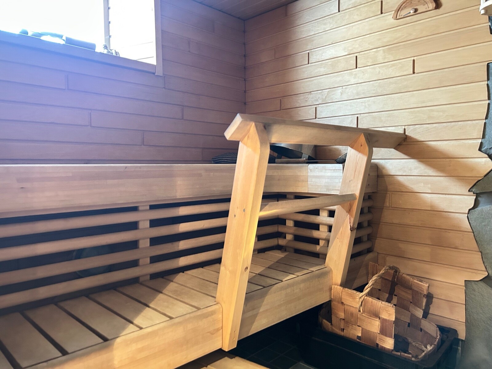 | Saunan kuvaus | Saunassa myös valmius sähkökiukaalle |