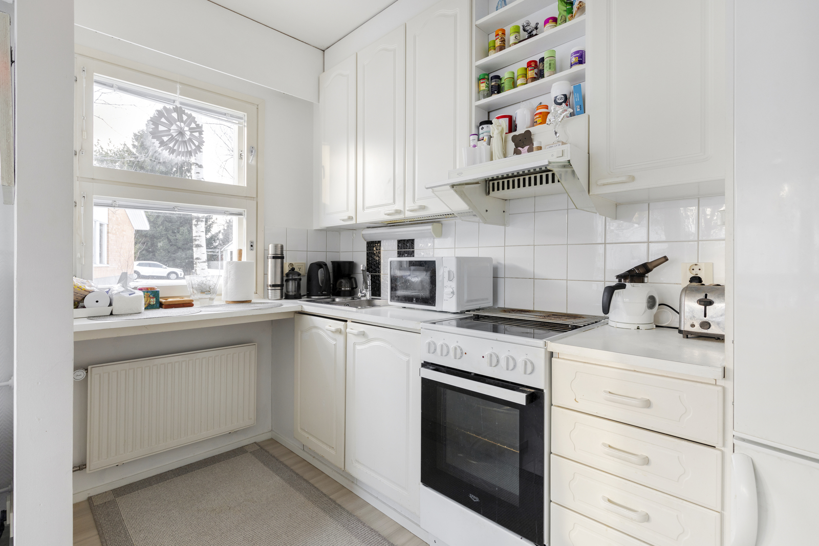 Valoisa saunallinen kaksio Vähäraumalla – rivitalomaista asumismukavuutta.