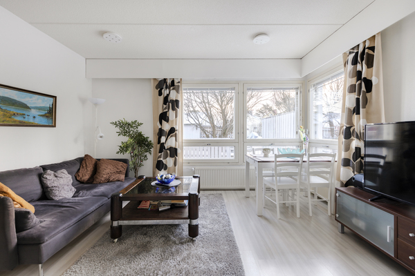 Asunnon pohjaratkaisu on toimiva. Asunnosta on kulku omalle terassille, joka tuo asumiseen rivitalomaista tunnelmaa ja lisätilaa erityisesti kesäkaudella. Oma sauna lisää arjen mukavuutta ja tekee kodista erityisen houkuttelevan.