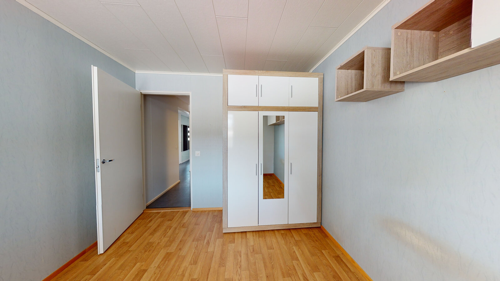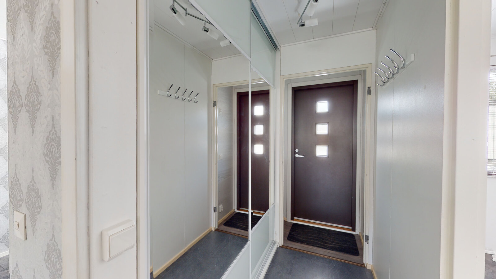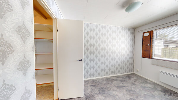 Pari makuuhuonetta, toinen heti keittiötä vastapäätä ja toinen olohuoneen vieressä. Toisen makuuhuoneen yhteydessä on vaatehuone.