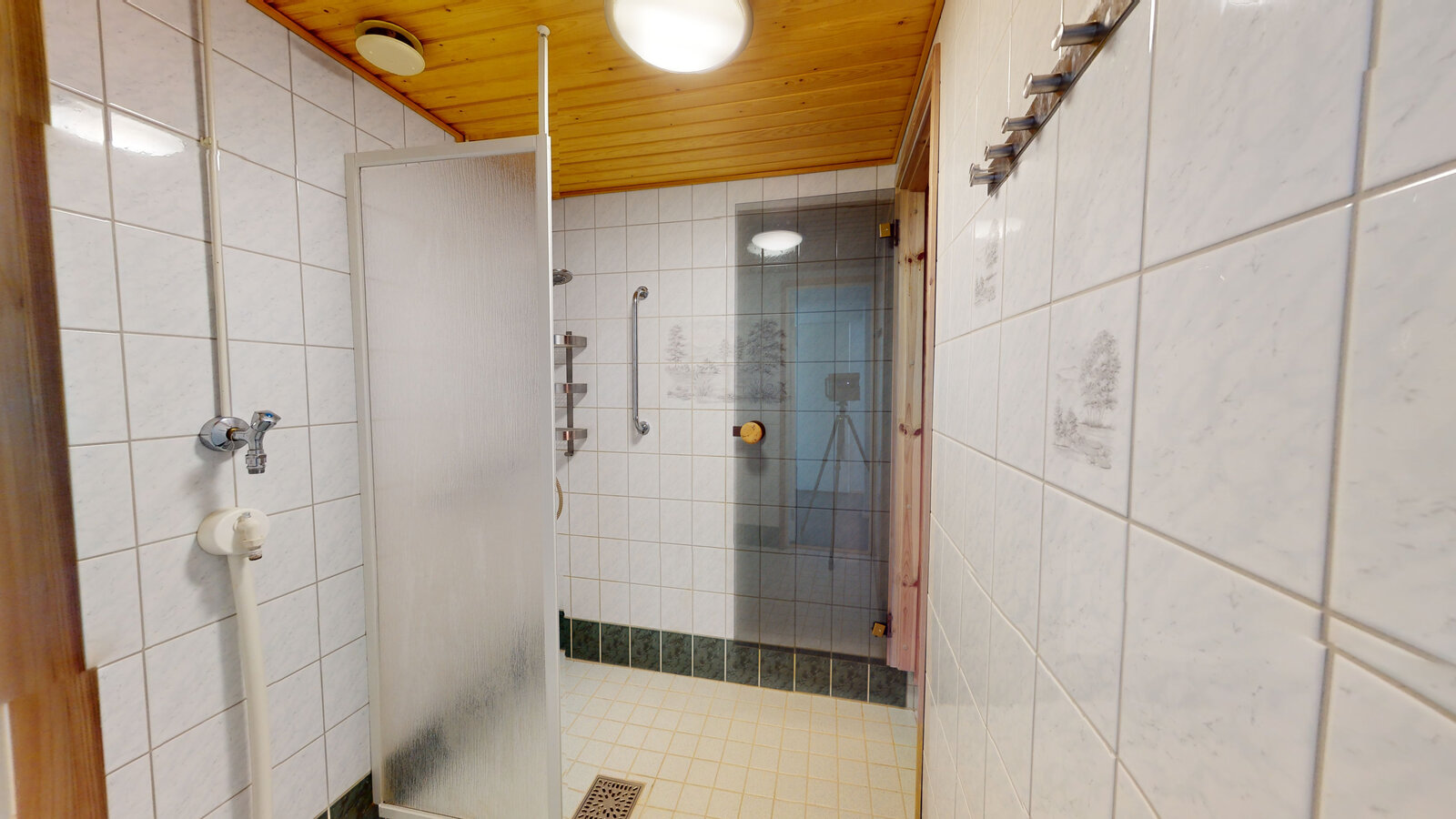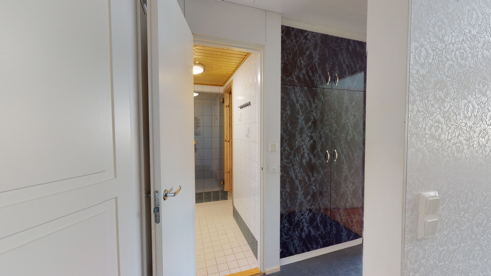 | Kylpyhuoneen kuvaus | Pesuhuone ja sauna remontoitu vuonna 2013. Laatoitusten alla on vedeneristys ja lattiakaivo on muovia |