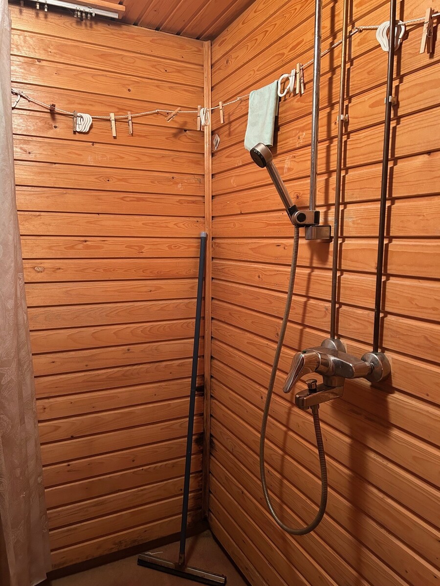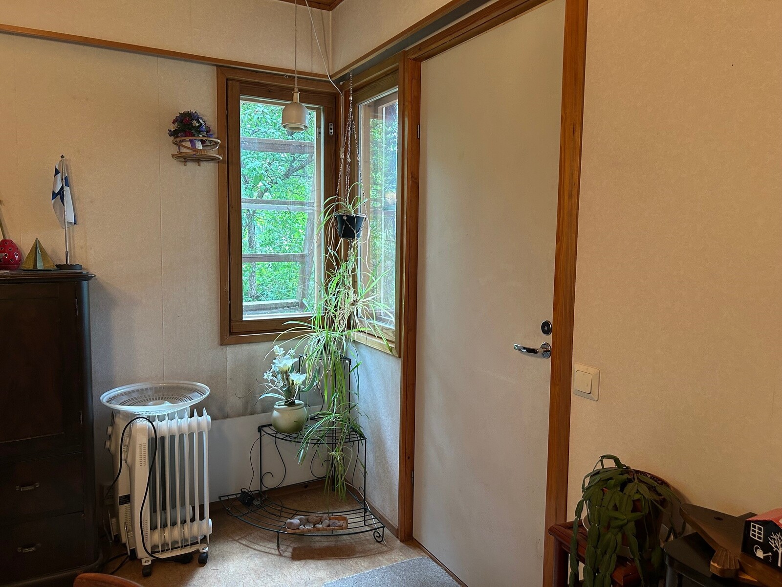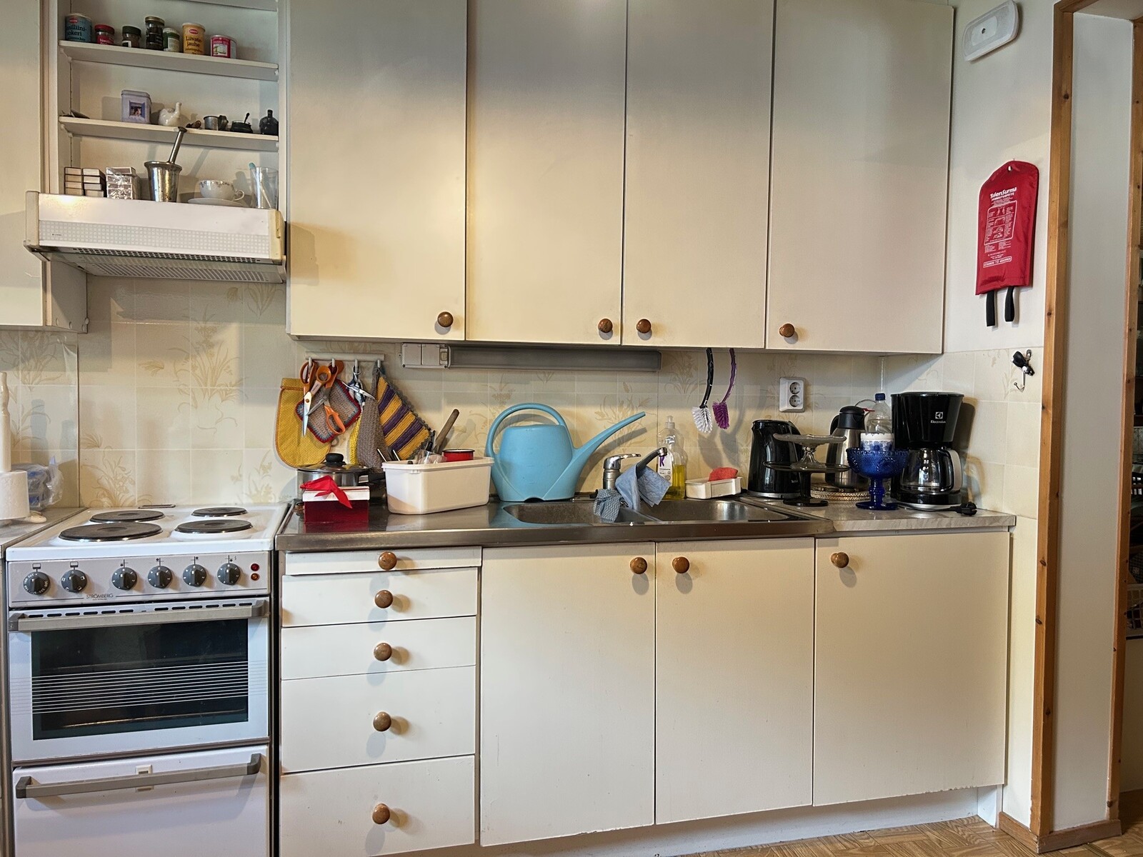 Talossa on sähkölämmitys ja leivinuuni olohuoneen ja keittiön välissä.