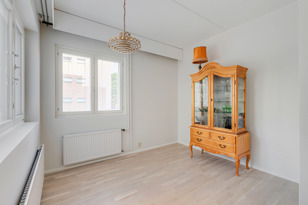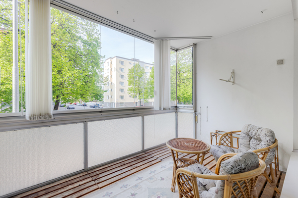 Länsipuiston varressa, rauhallisella paikalla kaupungin keskustassa ensimmäisen kerroksen vaaleasävyinen ja valoisa kolmio. Asunnosta löytyy oma sauna ja pesuhuoneen yhteydessä myös erillinen kodinhoitotila. Upea, tilava parveke puistomaisemin. Eteisessä hyvin säilytystilaa sekä tilava vaatehuone. Oma tontti, kaukolämpö. Esteetön kulku!