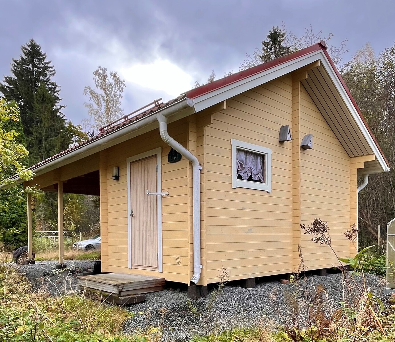 Kokonaisuutta täydentävät vuonna 2018 valmistuneet rakennukset: saunarakennus, kesähuone sekä autokatos jonka yhteydessä on varasto.