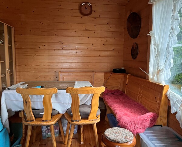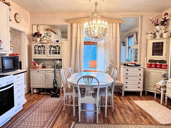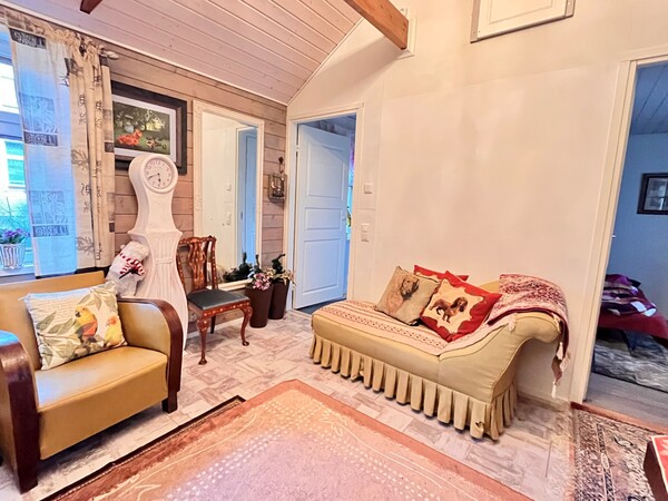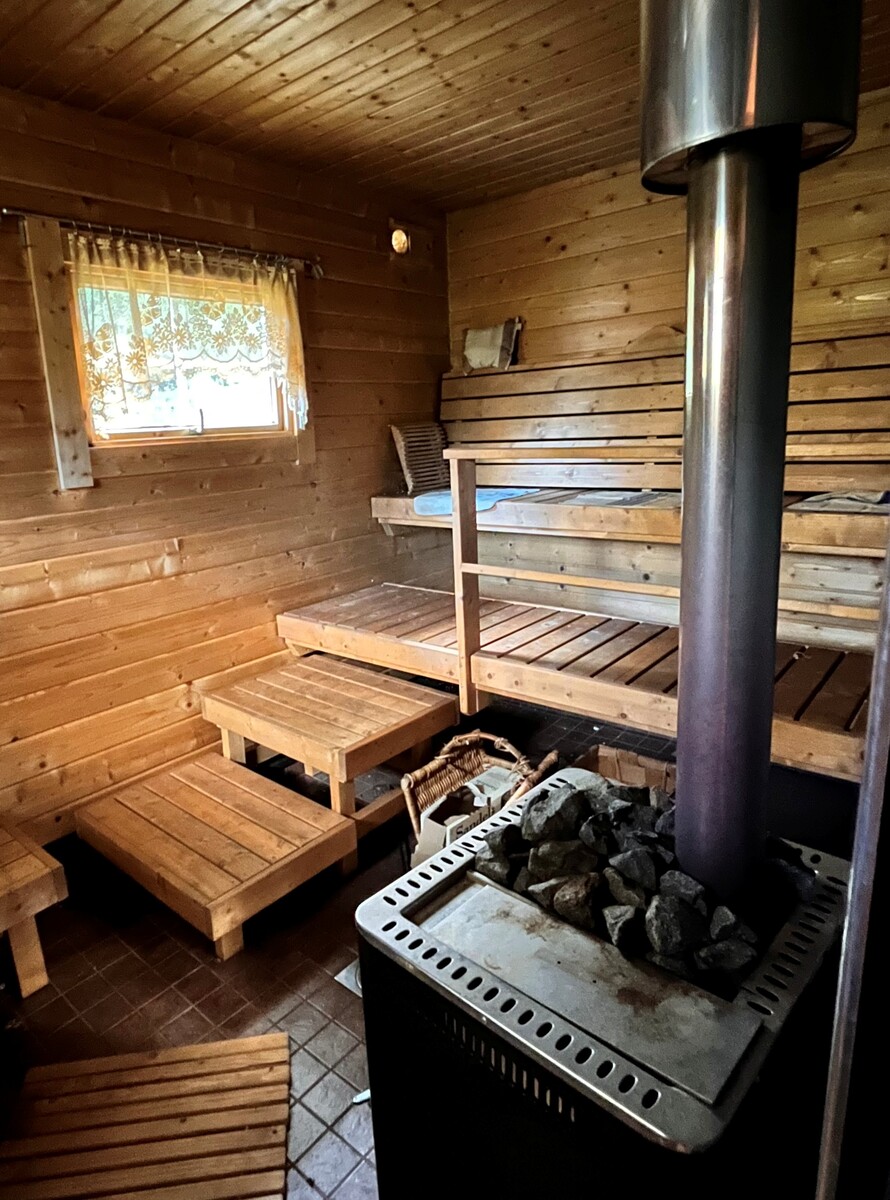 Päärakennuksessa on tilava keittiö, olohuone, pesuhuone sekä yläkerrassa kaksi huonetta.
