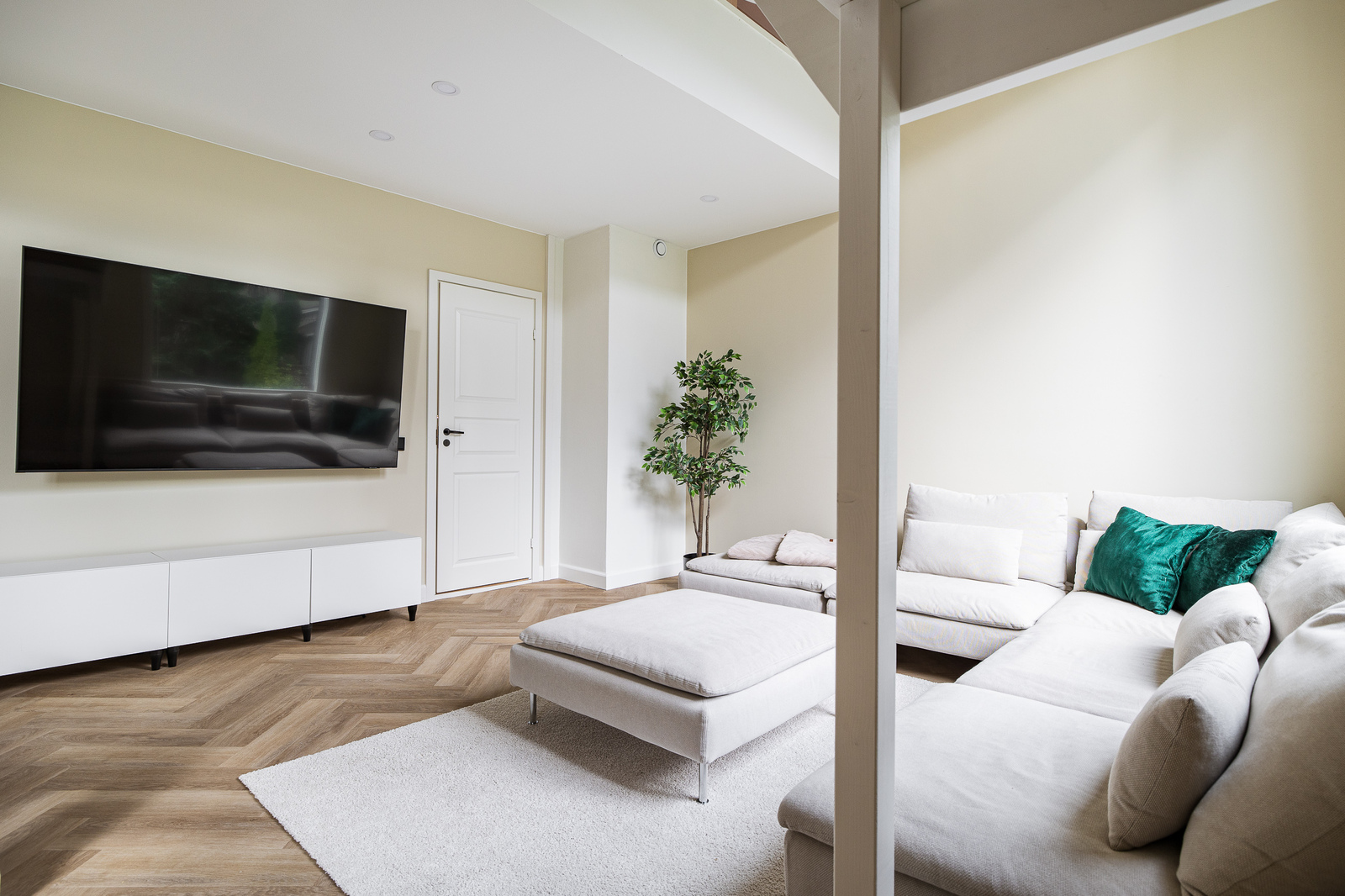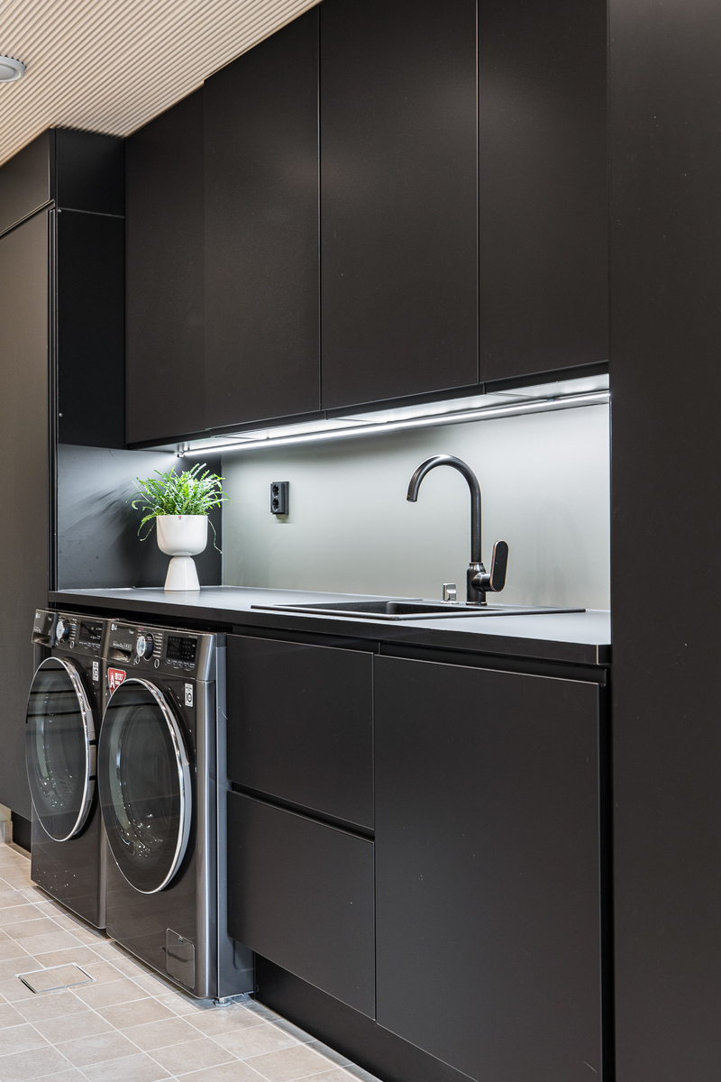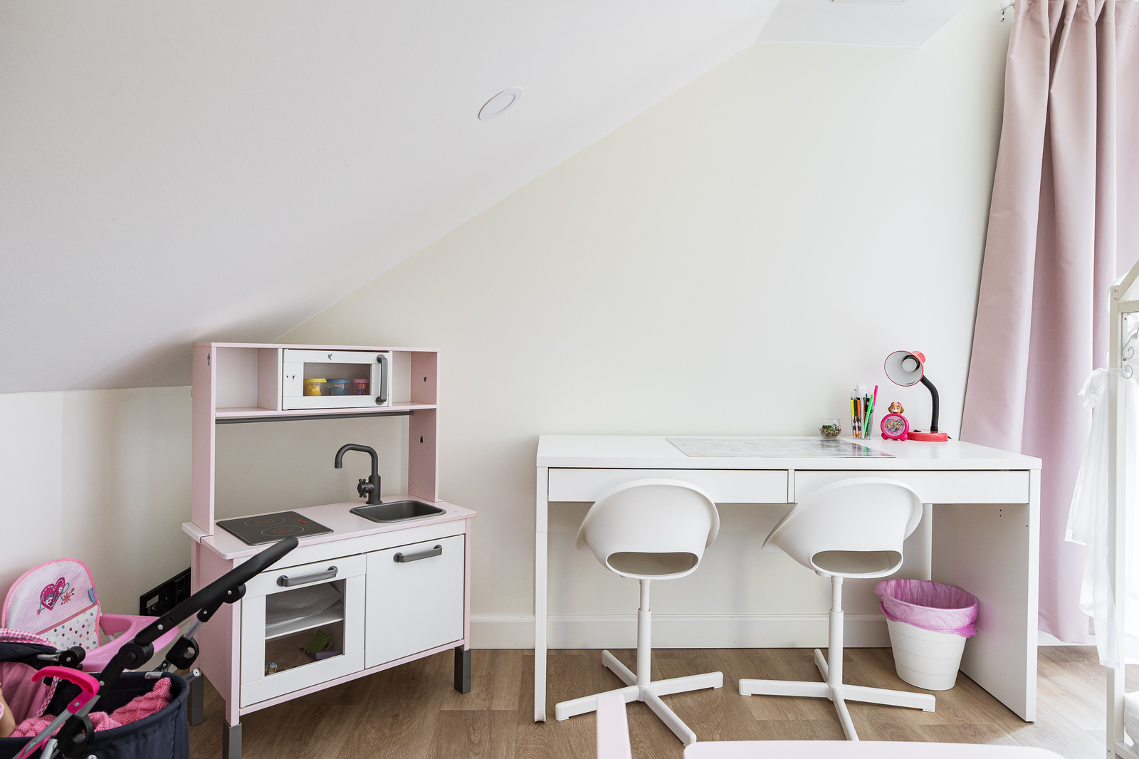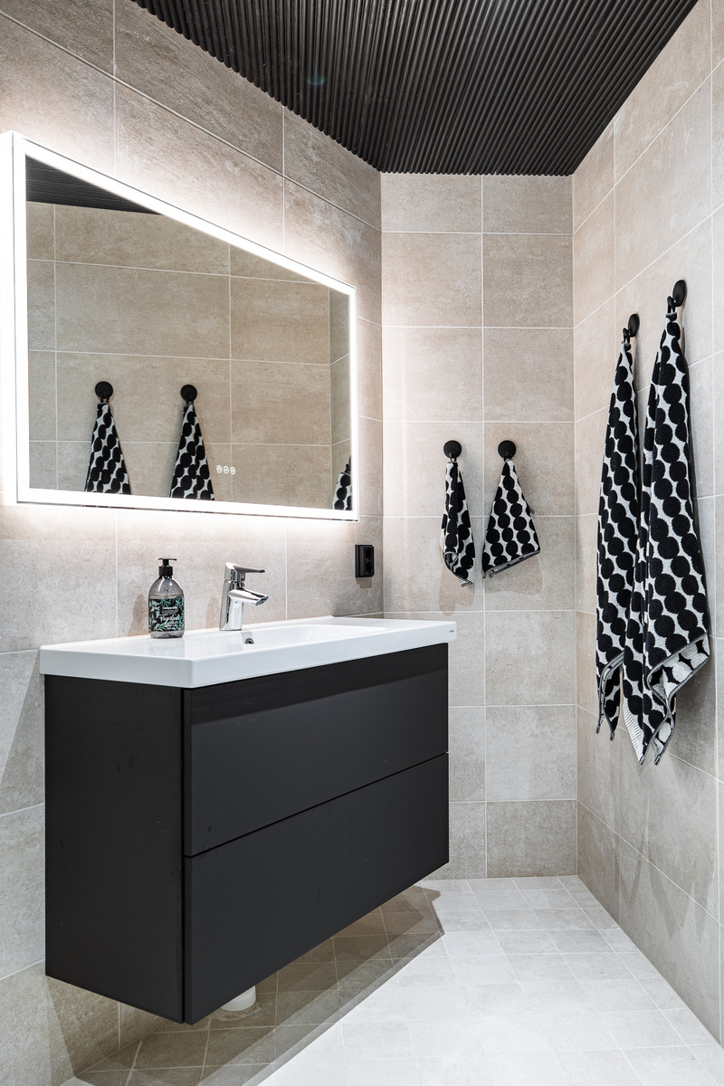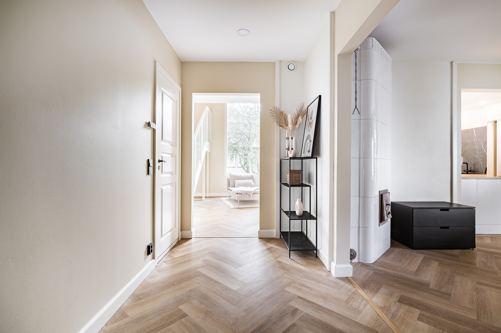 Kodin tunnelma on moderni ja valoisa. Suuret avarat tilavat sopivat mainiosti niin arjen pyörittämiseen kuin edustaviin juhlahetkiin. Sijainti Käppärässä on erinomainen: koulujen, palveluiden ja hyvien liikenneyhteyksien päässä, mutta silti rauhallisella alueella.
