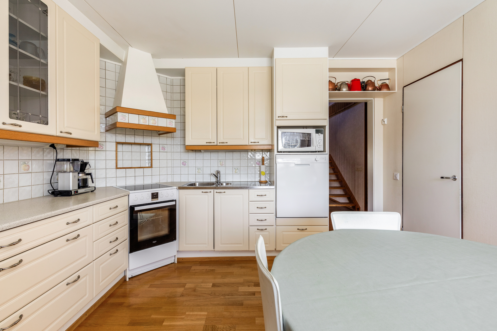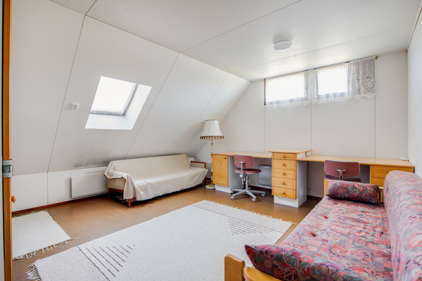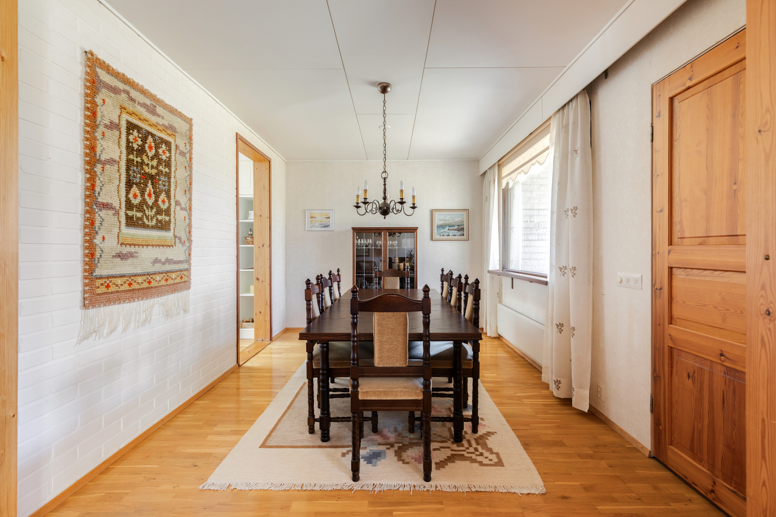 Tässä kodissa on nykyisellään kolme makuuhuonetta, mutta ruokailuhuone ja takkahuone antavat muuntautumisen varaa tarpeen tullen. Vaivaton sähkölämmitys, ilmalämpöpumppu sekä takka. Alakerran wc /pesuhuone remontoitu vuonna 2023. Autotalli ja varasto.