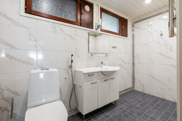 | Kylpyhuoneen kuvaus | Alakerrassa wc/ph, yläkerrassa ph ja sauna. |