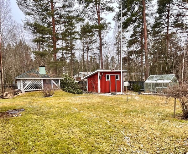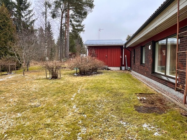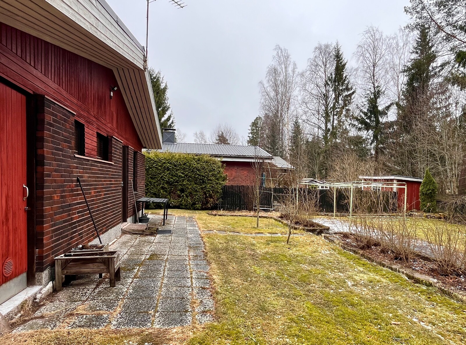 Oma suojaisa tontti joka rajautuu puistoalueeseen. Pihapiirissä on lisäksi autotalli, varastotilaa, viihtyisä grillikota sekä kasvihuone.