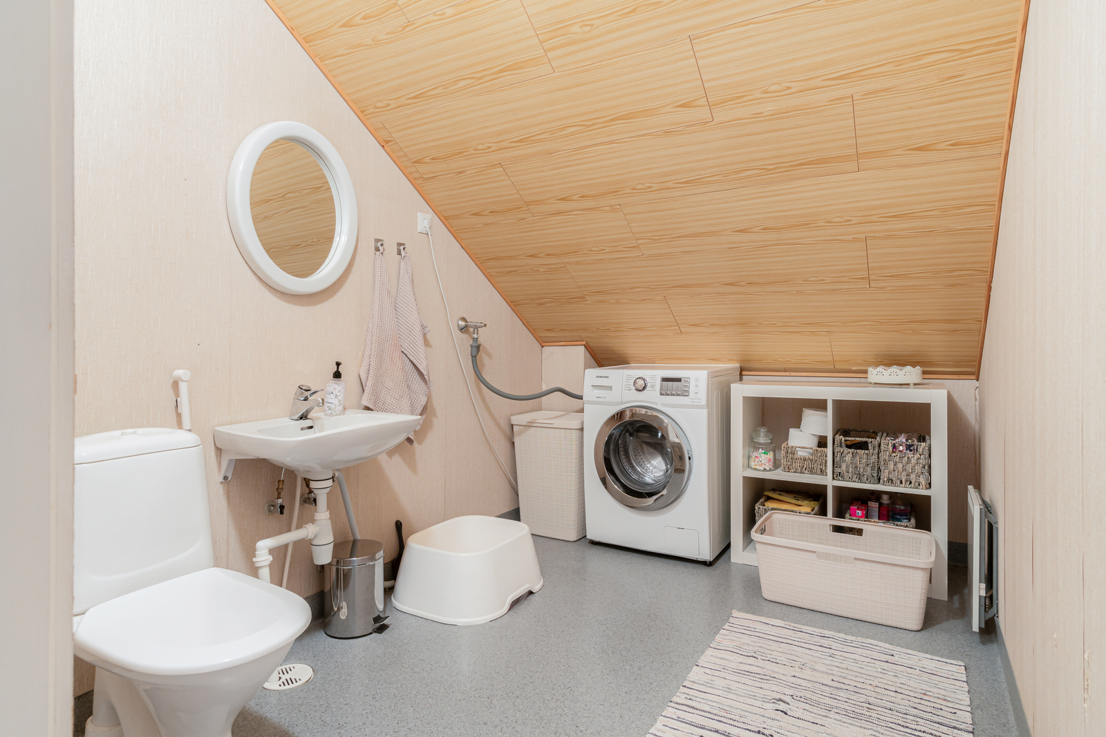 Pesuhuoneosasto on vielä alkuperäinen ja se vaatiikin nyt korjauksen ja remontoinnin. Muuten pintoja päivittämällä saat tästä kivan omannäköisesi kodin. Kuntoarvio jo tehty!