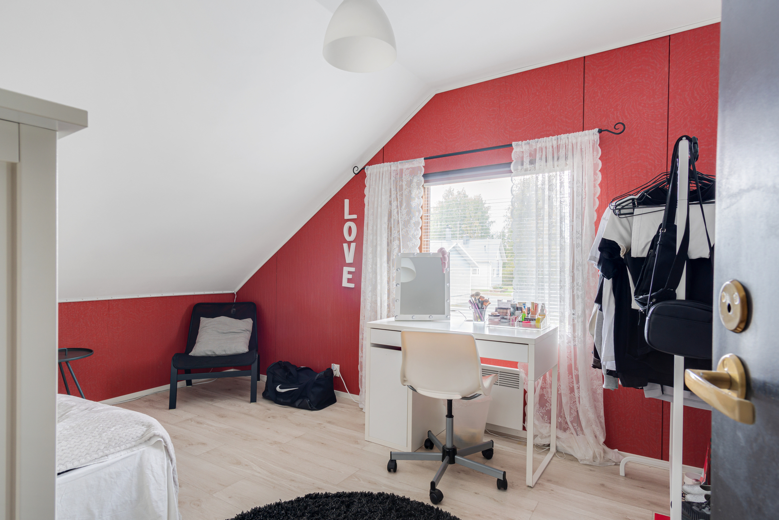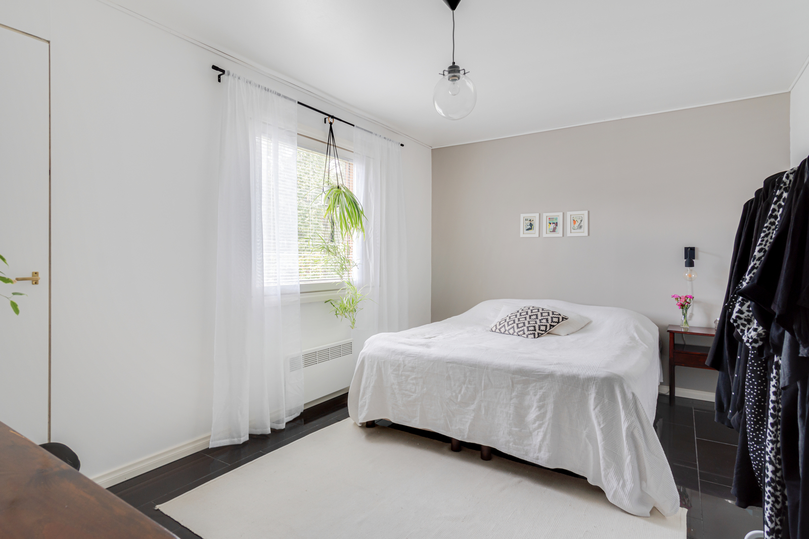 4 makuuhuonetta joista yksi alhaalla ja kolme ylhäällä. Molemmista kerroksista löytyy wc.
