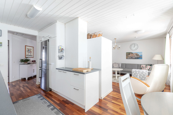 Asunnossa on käytännöllinen ja selkeä pohjaratkaisu, jossa tilaa ja toimivuutta ei ole unohdettu. Valkoinen, modernisti remontoitu keittiö hurmaa ajattomuudellaan ja tarjoaa erinomaiset puitteet ruoanlaittoon ja yhdessäoloon. Raikkaat pinnat ja toimiva tilankäyttö tekevät arjesta sujuvaa.