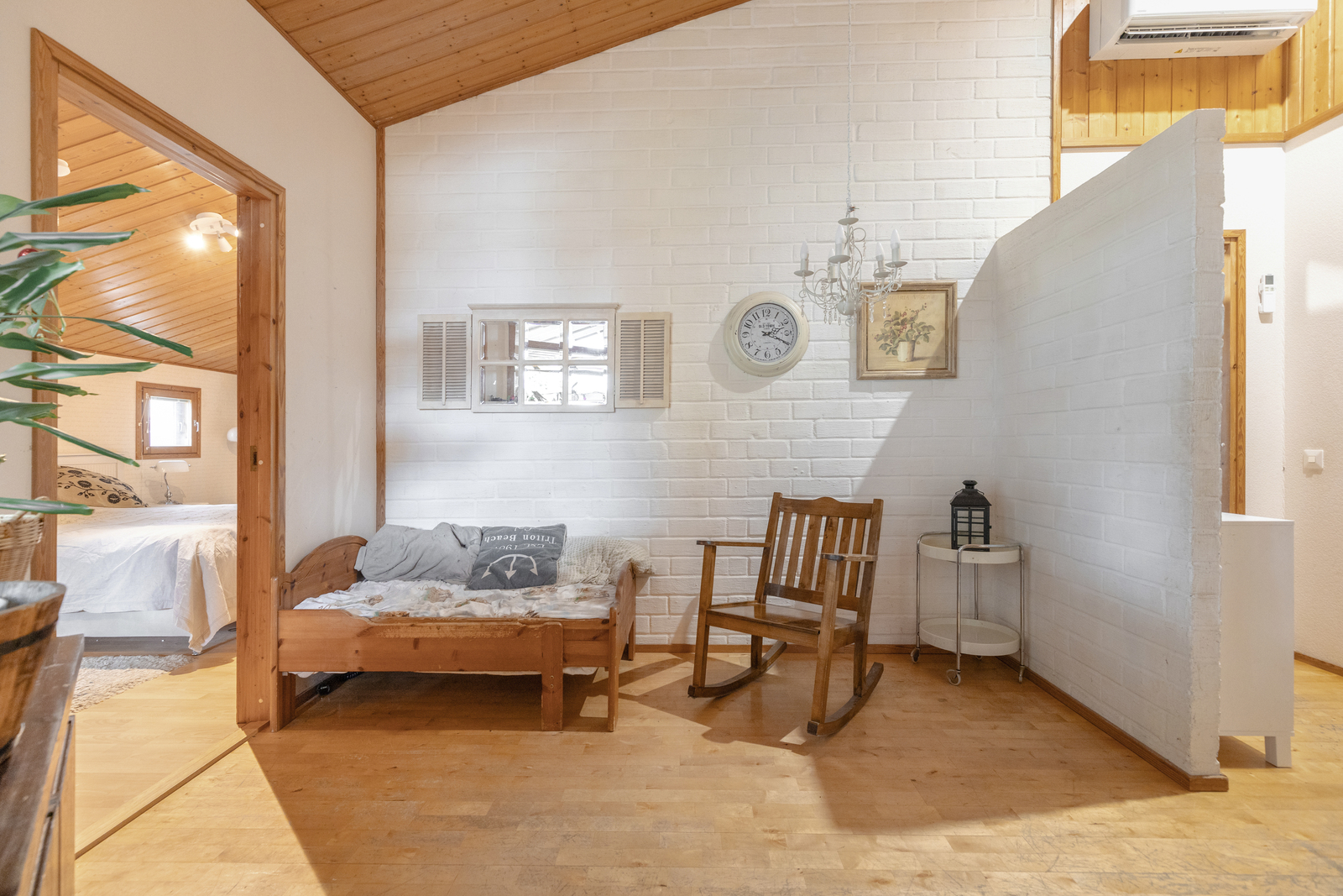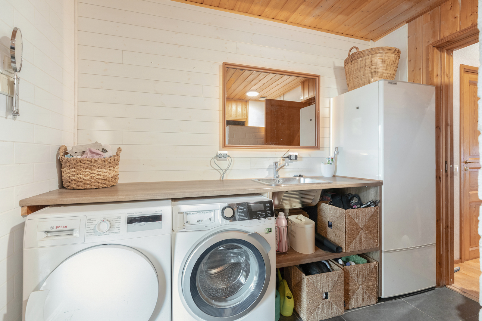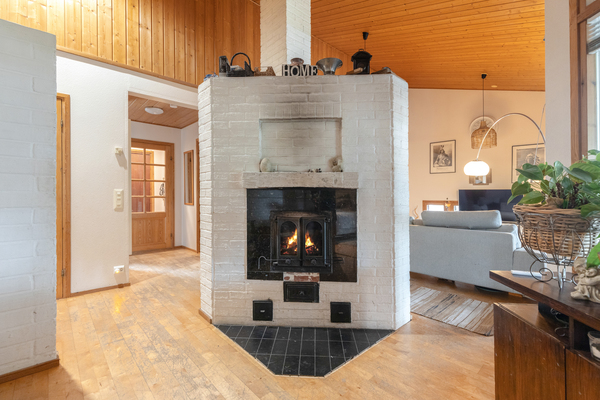 Keskeisellä paikalla sijaitseva varaava takka luo lämpöä ja tunnelmaa, ja ilmalämpöpumppu lisää asumismukavuutta sekä energiatehokkuutta ympäri vuoden.