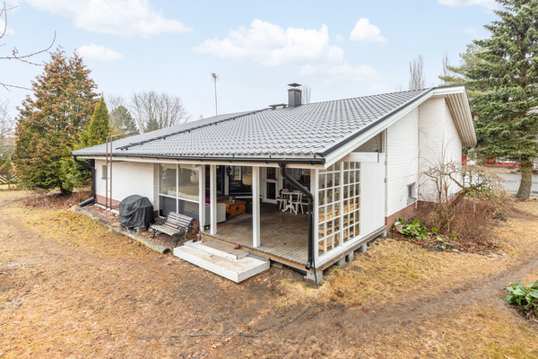 Auringon puolella oleva katettu terassi tarjoaa loistavan paikan rentoutumiseen, kesäpäivistä nauttimiseen ja yhdessäoloon säältä suojassa.