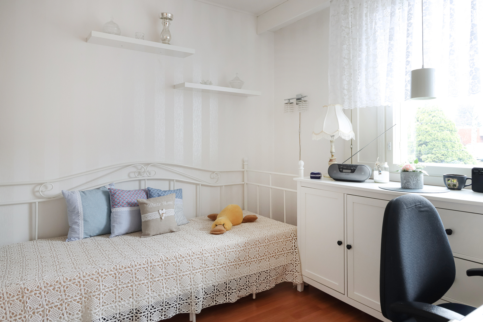 Suojaisa piha tarjoaa paikan, jossa voi grillata ja nauttia auringosta. Asunnon etupuolelle saa auton ihan oven eteen.