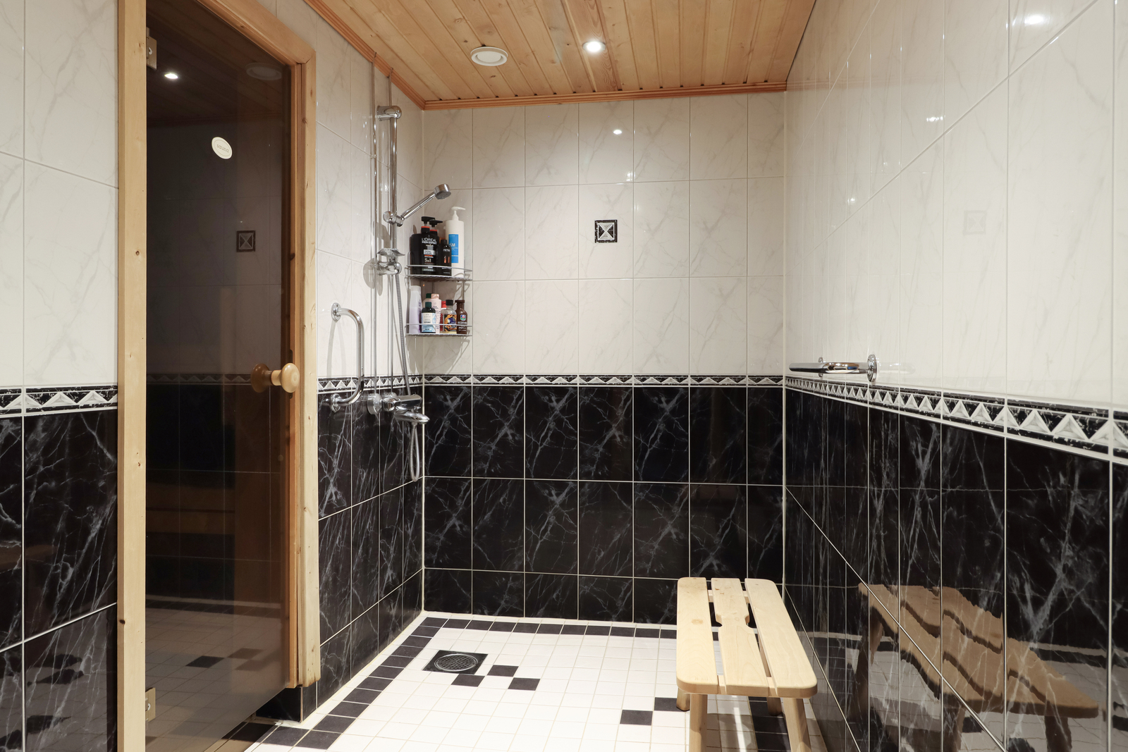 Pesuhuone on vuodelta 2003 ja kiuas (Harvian loistavat löylyt antava pilarikiuas) on vuodelta 2021.