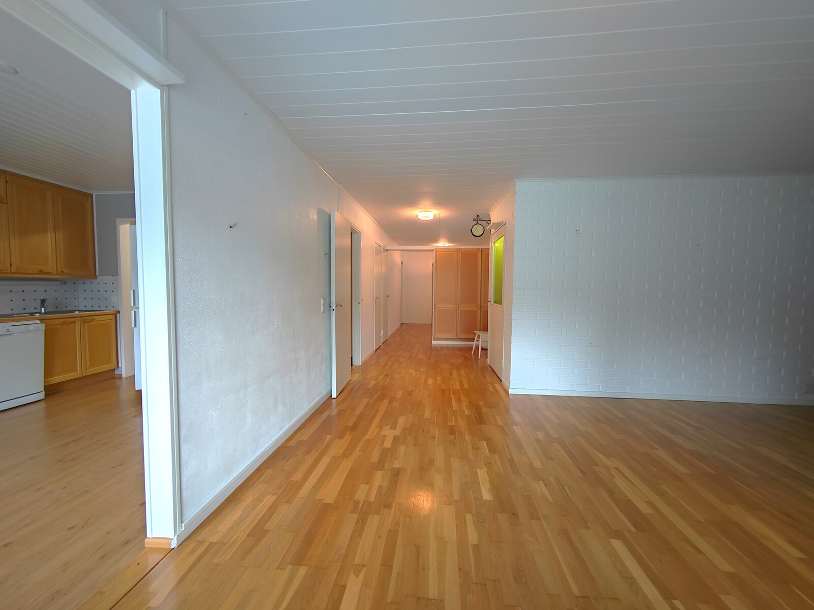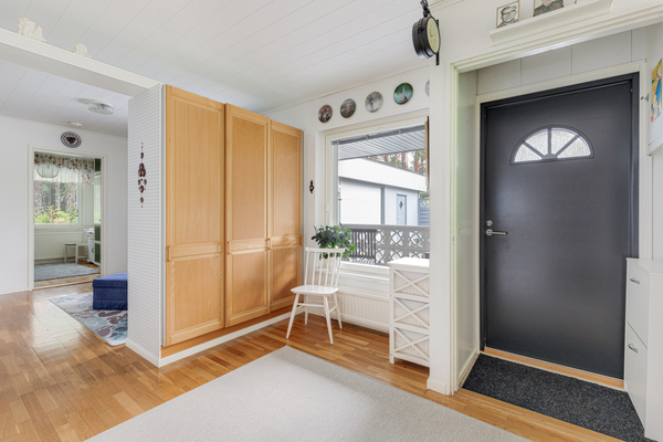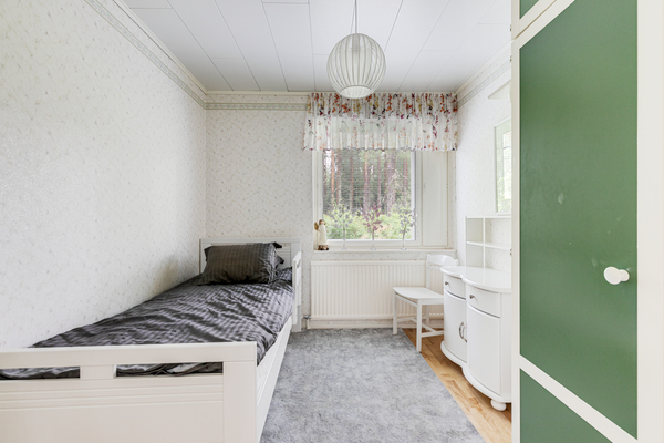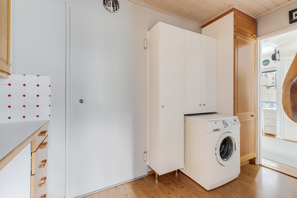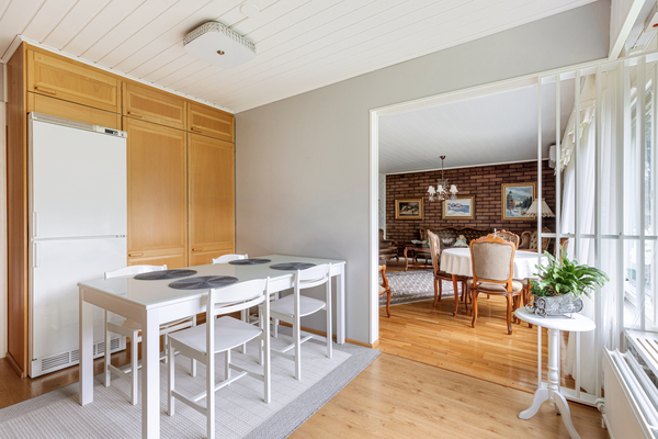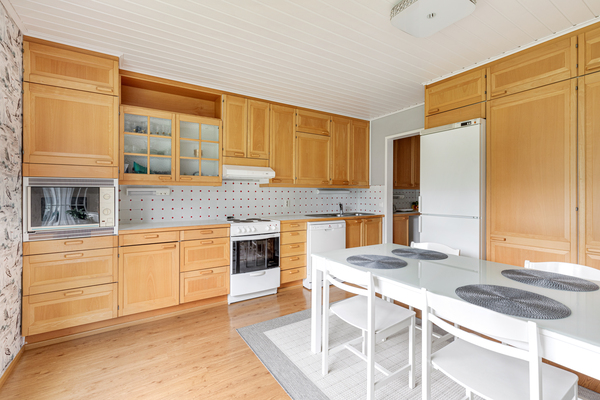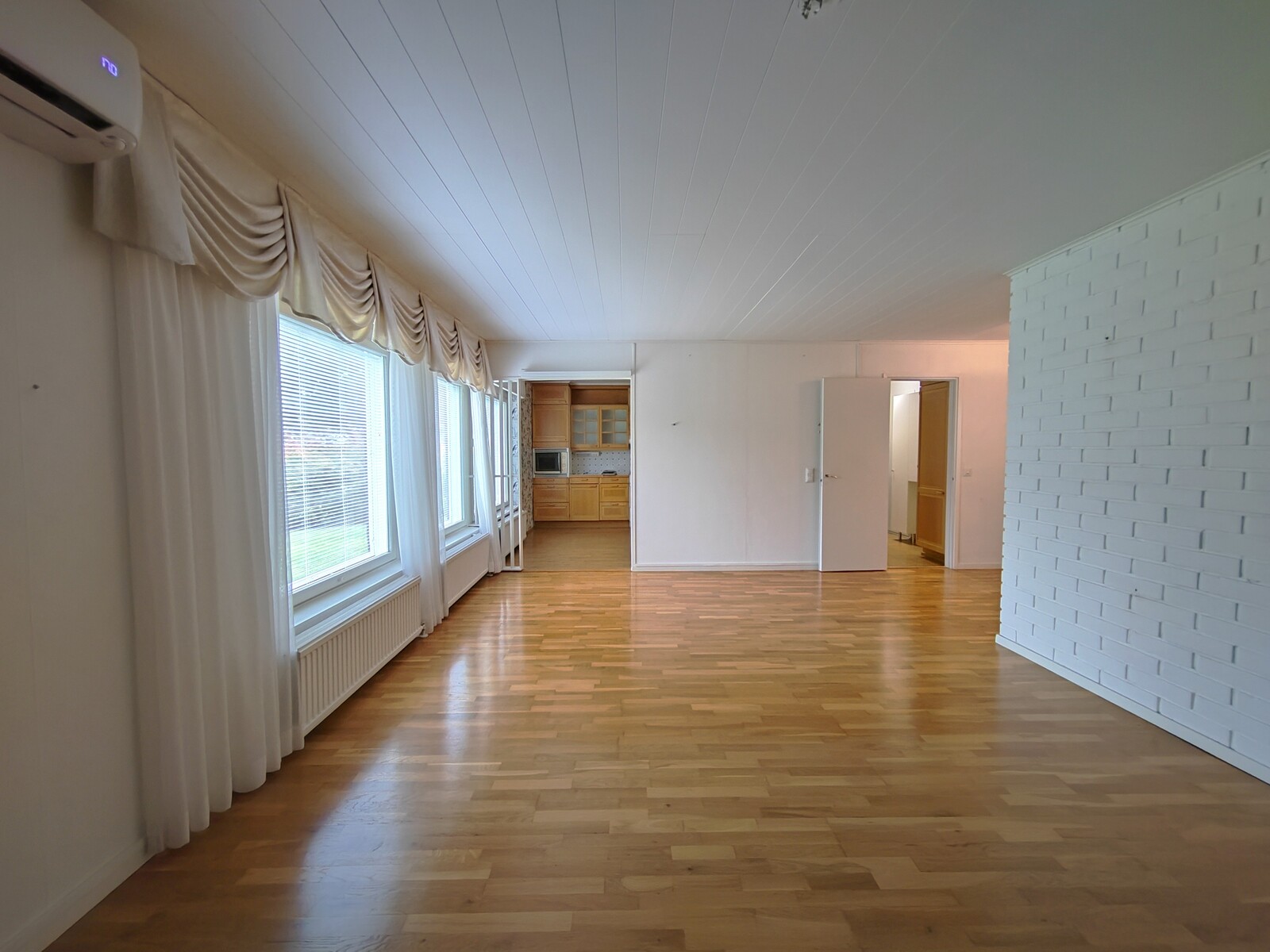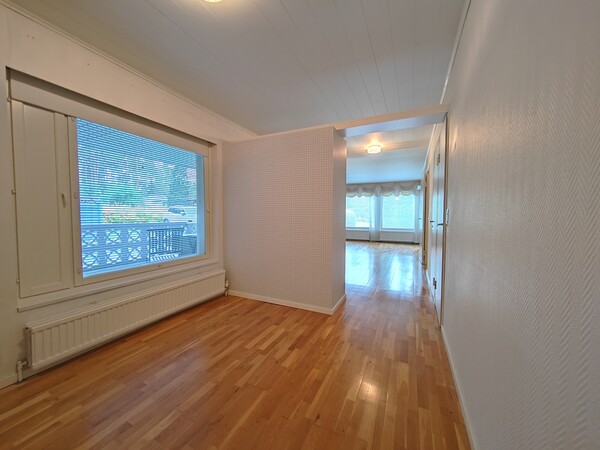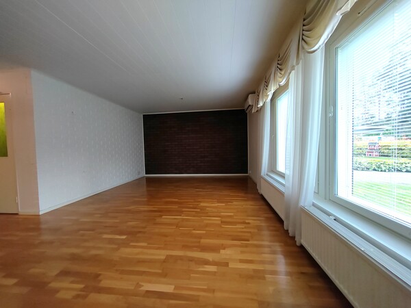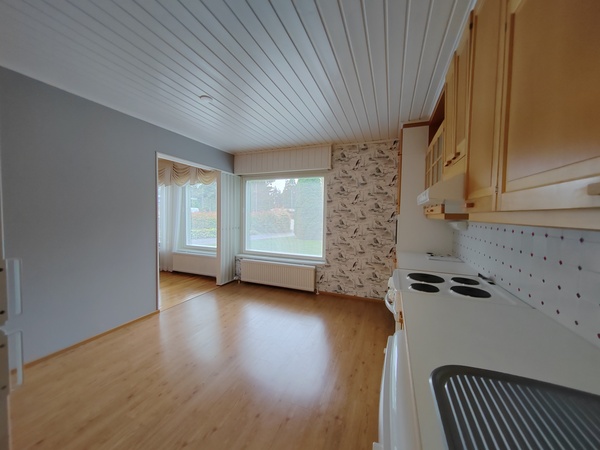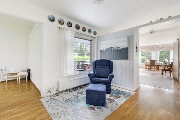 Tästä valoisassa kodissa on kivat ja toimivat tilat, 3 makuuhuonetta, tilava olohuone, keittiö apukeittiö tiloineen ja pesutilat saunatiloineen. Lisäksi autotalli ja varasto.