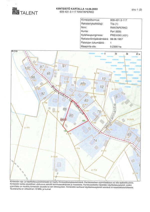 Suositun Preiviikin rantakujan varrella siisti tilava tilava kesämökki + saunarakennus + huvimaja ja liiteri/puucee. Avara puutarhapiha hedelmäpuineen ja marjapensaineen päin päivää eli lounaaseen. Sähkö ja vesi. Lyhyt matka Preiviikin kalarantaan haistelemaan merta (ja tarkastamaan veneen kiinnitys). Ja vain pikkuisen pidempi matka Porin keskustaan tai Yyteriin uimaan, golfaamaan, ratsastamaan...