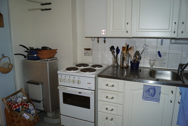 | Keittiön kuvaus | siisti kaapisto, jenkkikaappi, sähköliesi, Porin Matti, lv-boileri |