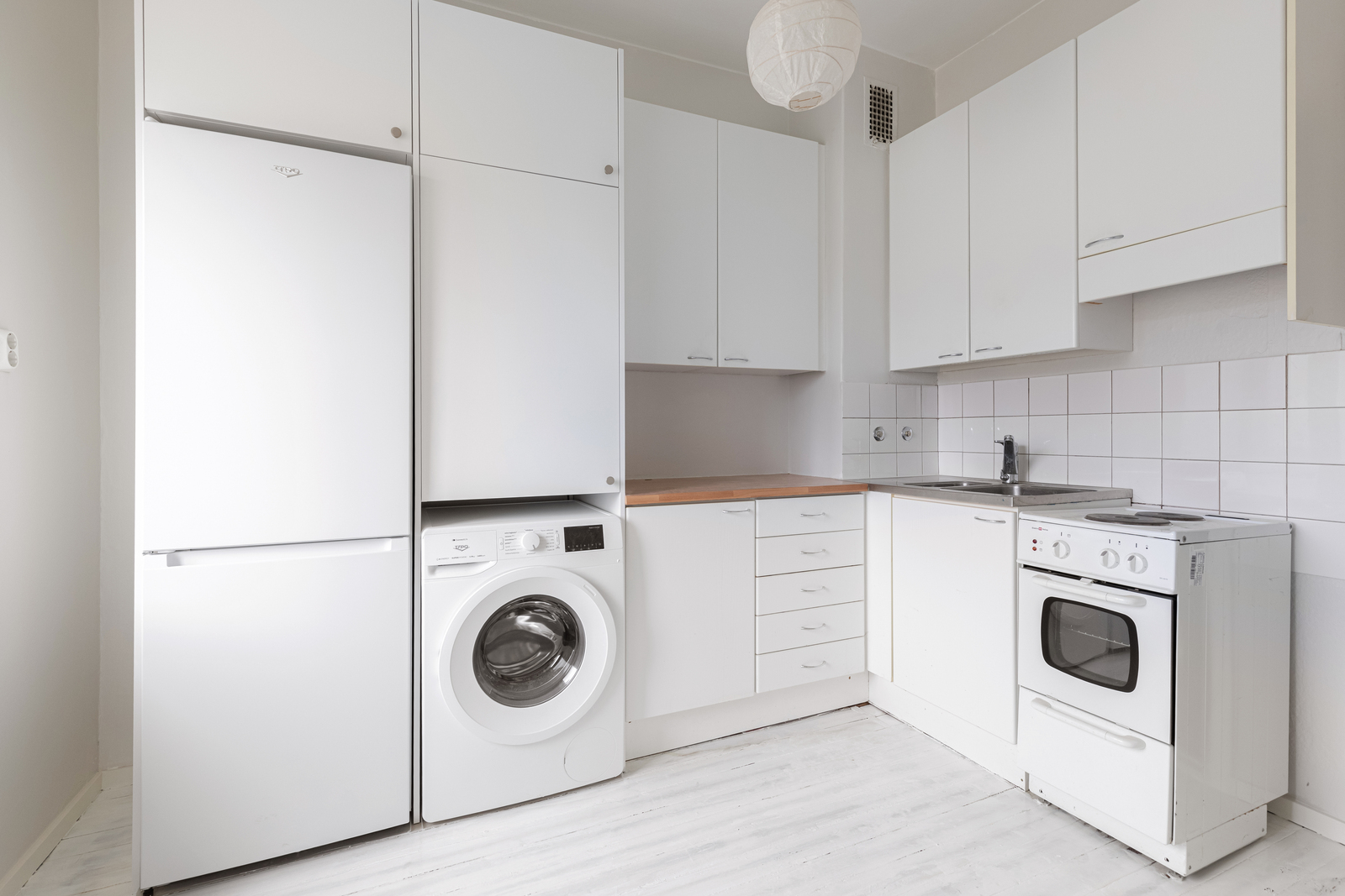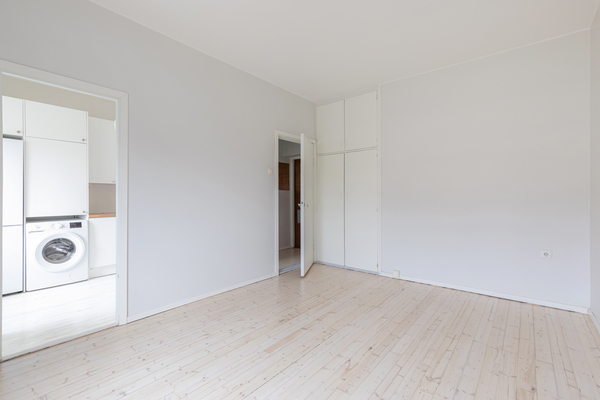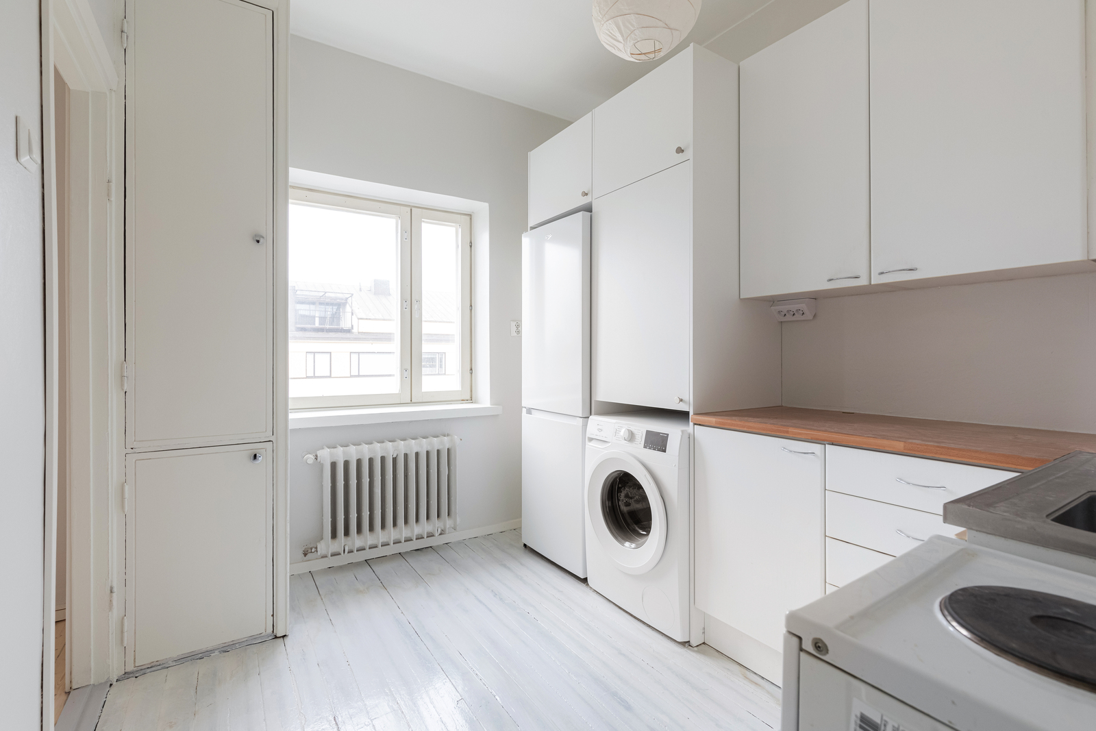 Asunnossa on kauniit lautalattiat ja korkeat huoneet, jotka tuovat tilaan avaruutta ja persoonallista ilmettä. Keittiössä on runsaasti säilytystilaa, joten tavarat löytävät paikkansa helposti. Asunnossa on valmiina pesukone, mikä tekee arjesta entistä helpompaa.