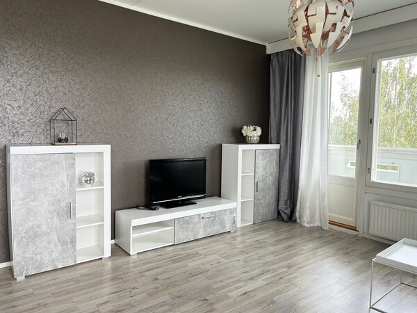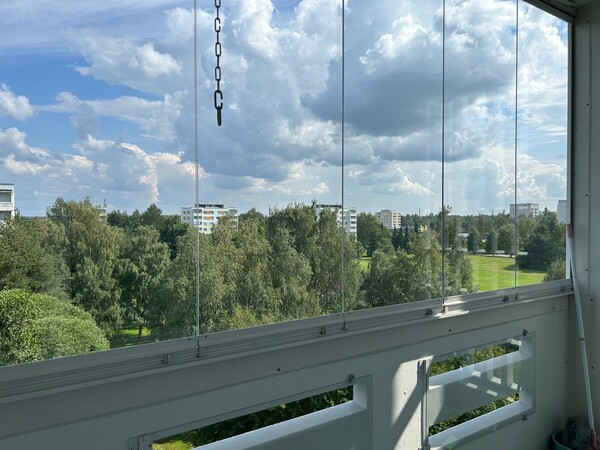 Puinnintiellä myytävänä kiva kaksio ylhäältä (7. kerroksesta) ja autotalli!