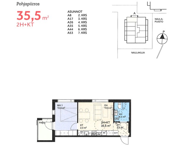 | Huoneiston kuvaus | 2h,k,ph + lasitettu parveke |