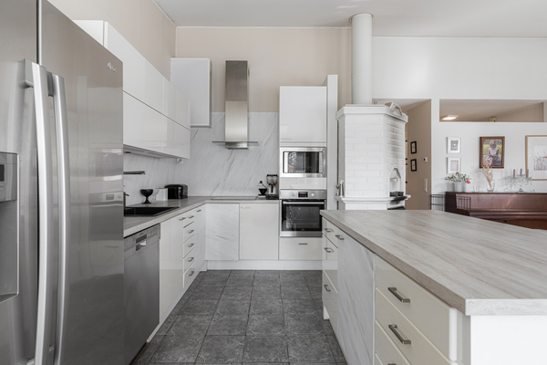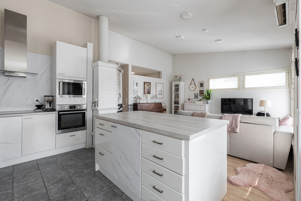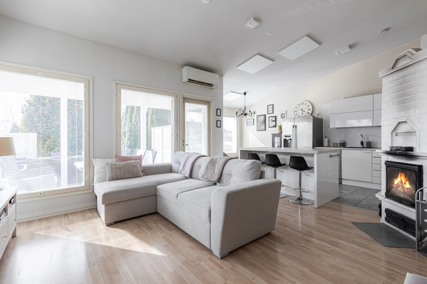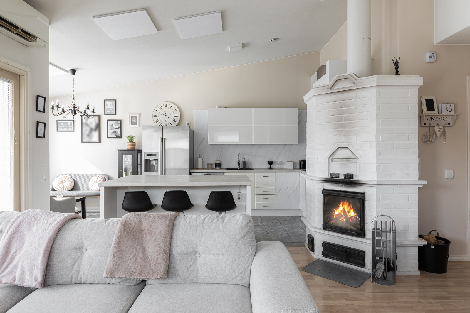 Asumismukavuutta lisää sähköinen lattialämmitys, tunnelmallinen varaava takka sekä energiatehokas ilmalämpöpumppu, jotka tuovat lämpöä ja säästöä ympäri vuoden.