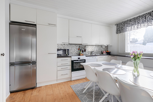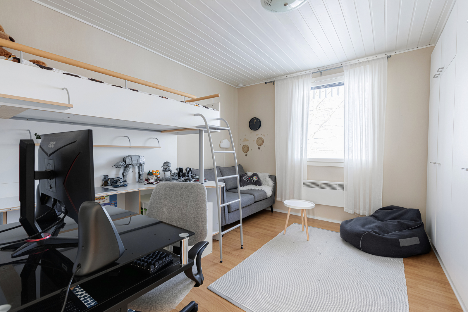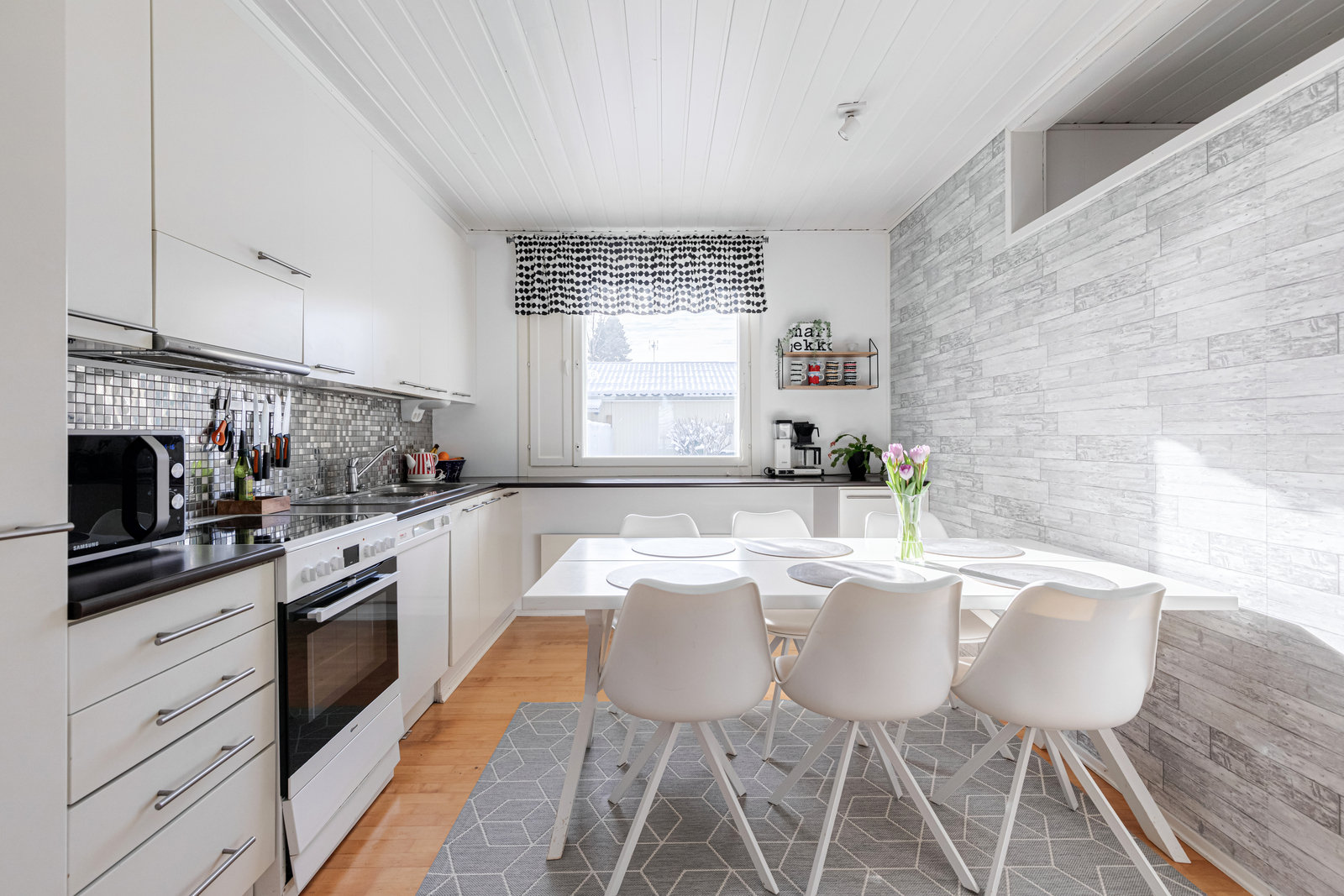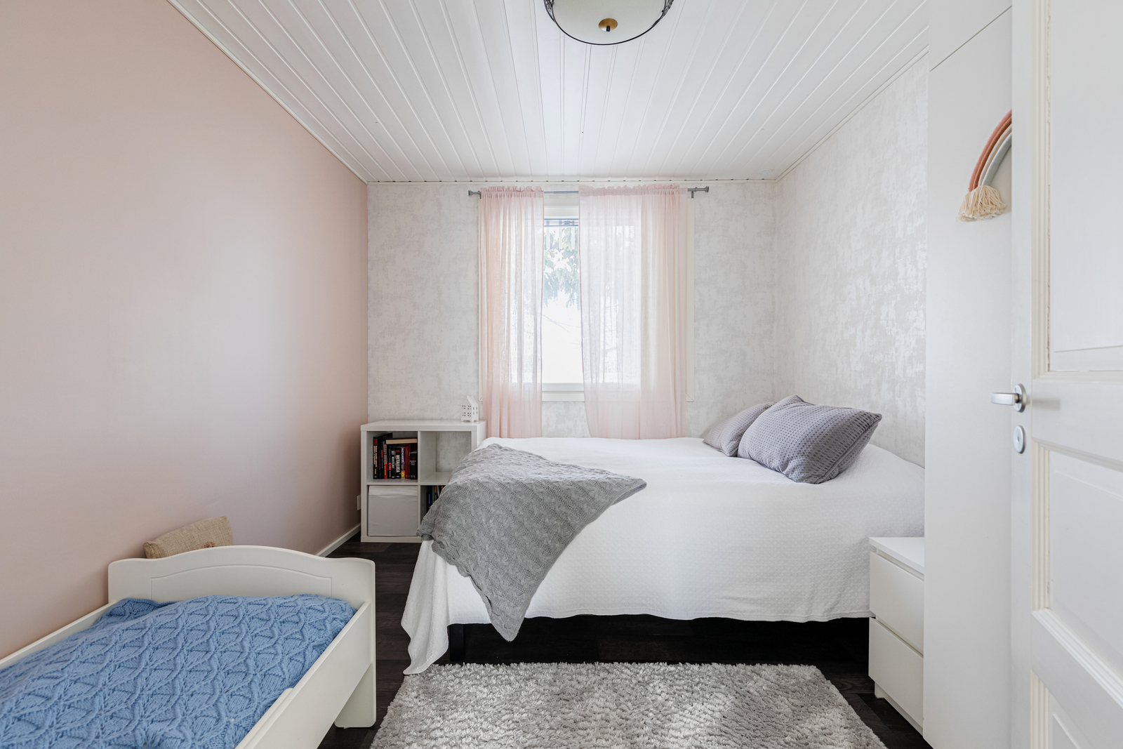 Tässä kauniissa ja harmoniset sävyt omaavassa kodissa on kaksi makuuhuonetta, joiden ikkunoista voi ihastella peltomaisemaa. Molemmissa makuuhuoneissa on hyvin säilytystilaa, toisessa on kaapistoa jopa koko seinällisen verran. Asunnon olohuone on tilava ja mahdollistaa tarvittaessa nurkkauksen vaikkapa pienelle kotitoimistolle, valokuitukin jo on. Keittiö on toimiva ja siellä on hyvin lasku- ja työskentelytilaa. Erillinen wc ja kodinhoitohuone helpottavat arjen pyöritystä. Kylpyhuone, sauna ja kodinhoitohuone uusittu 2019. Wc uusittu 2020.