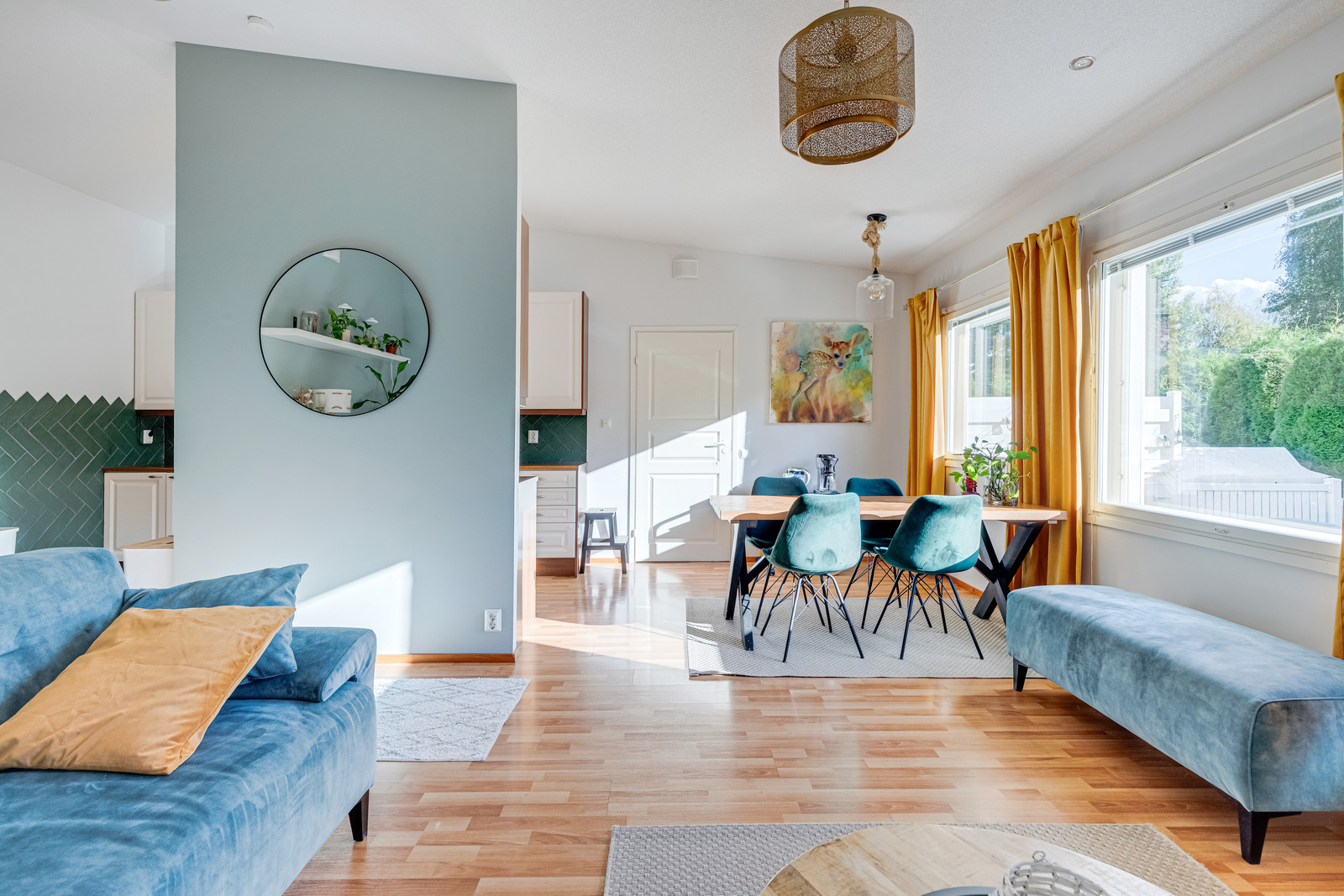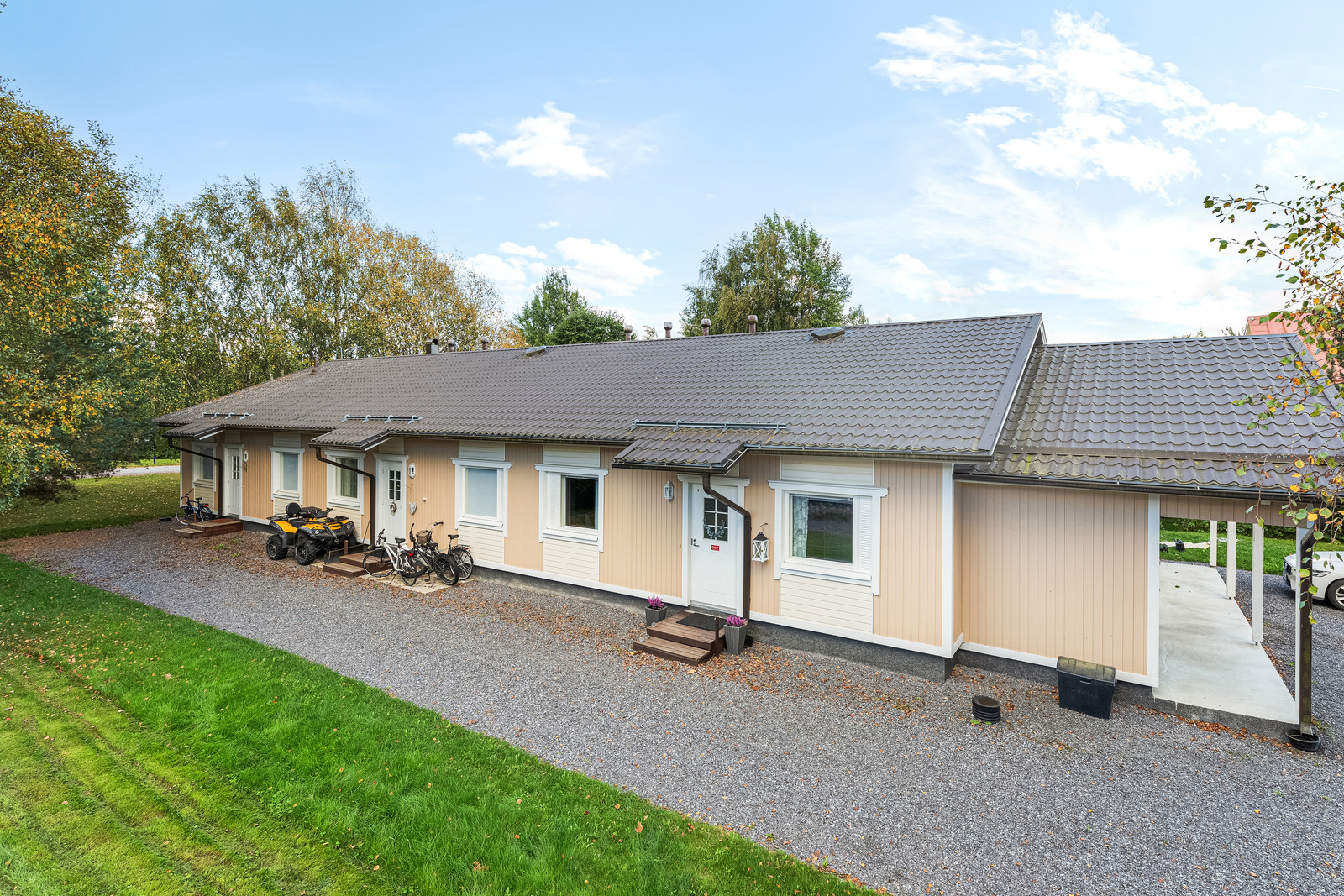 Viistokatto tuo asuntoon reilusti huonekorkeutta ja luoden samalla tilantuntua oleskelutiloihin. Asunnossa on toimiva pohjaratkaisu, sauna, kodinhoitohuone, hyvin kaappi- sekä säilytystiloja mm. vaatehuone ja ulkovarasto. Takapiha on kuin kutsuva keidas terasseineen, täällä mahtuu niin puuhastelemaan sekä rentoutumaan.